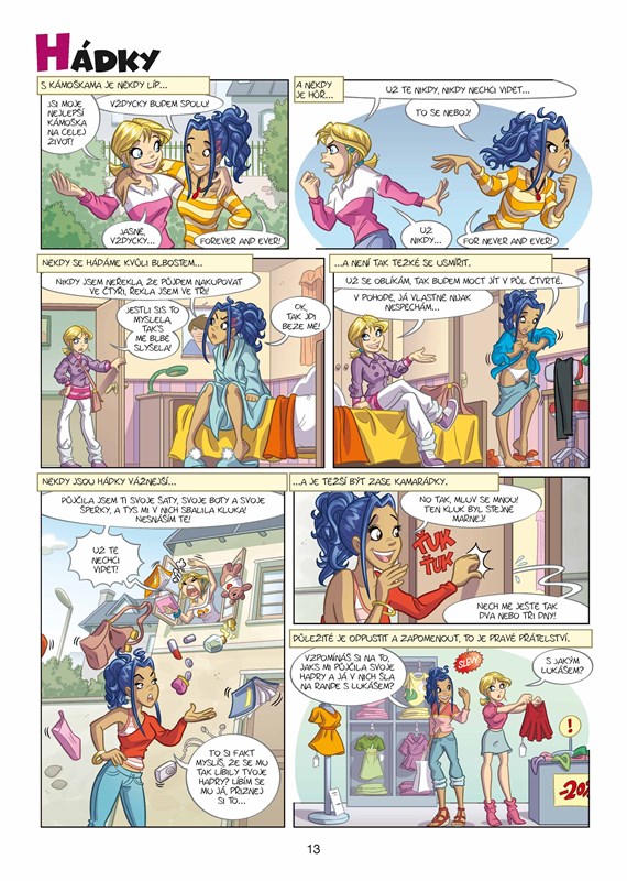 Chceš se dozvědět všechno o svých kamarádkách, a ještě se u toho zasmát? Od A jako Ahoj až po Z jako Zpovědi přes Lži, Usmíření a Tajnosti. Rady, vysvětlení, tipy, otázky i odpovědi, to vše v novém zábavném komiksu.