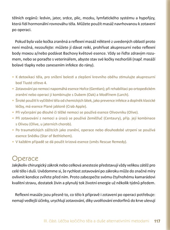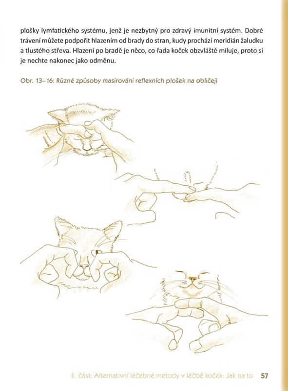 Sedává vám vaše kočka ráda na klíně, zatímco vy ji masírujete a hladíte? V tom případě vám tato kniha ukáže, jak právě masážemi můžete své kočce zlepšovat její zdravotní stav, ba dokonce léčit nemoci! Autorka vás seznámí s reflexními body na kočičím těle, a nejen s nimi. Pro případ běžných zdravotních obtíží v této knize naleznete rady z alternativní medicíny, které pomohou uzdravit všech devět kočičích životů.