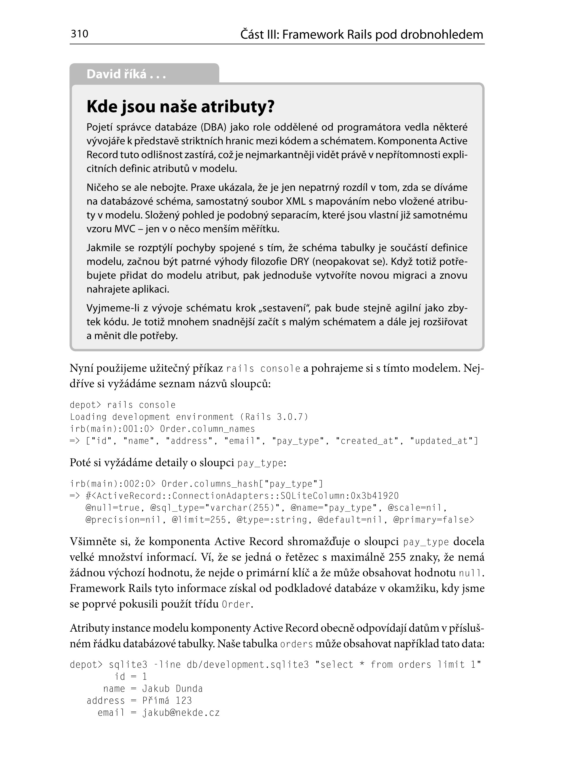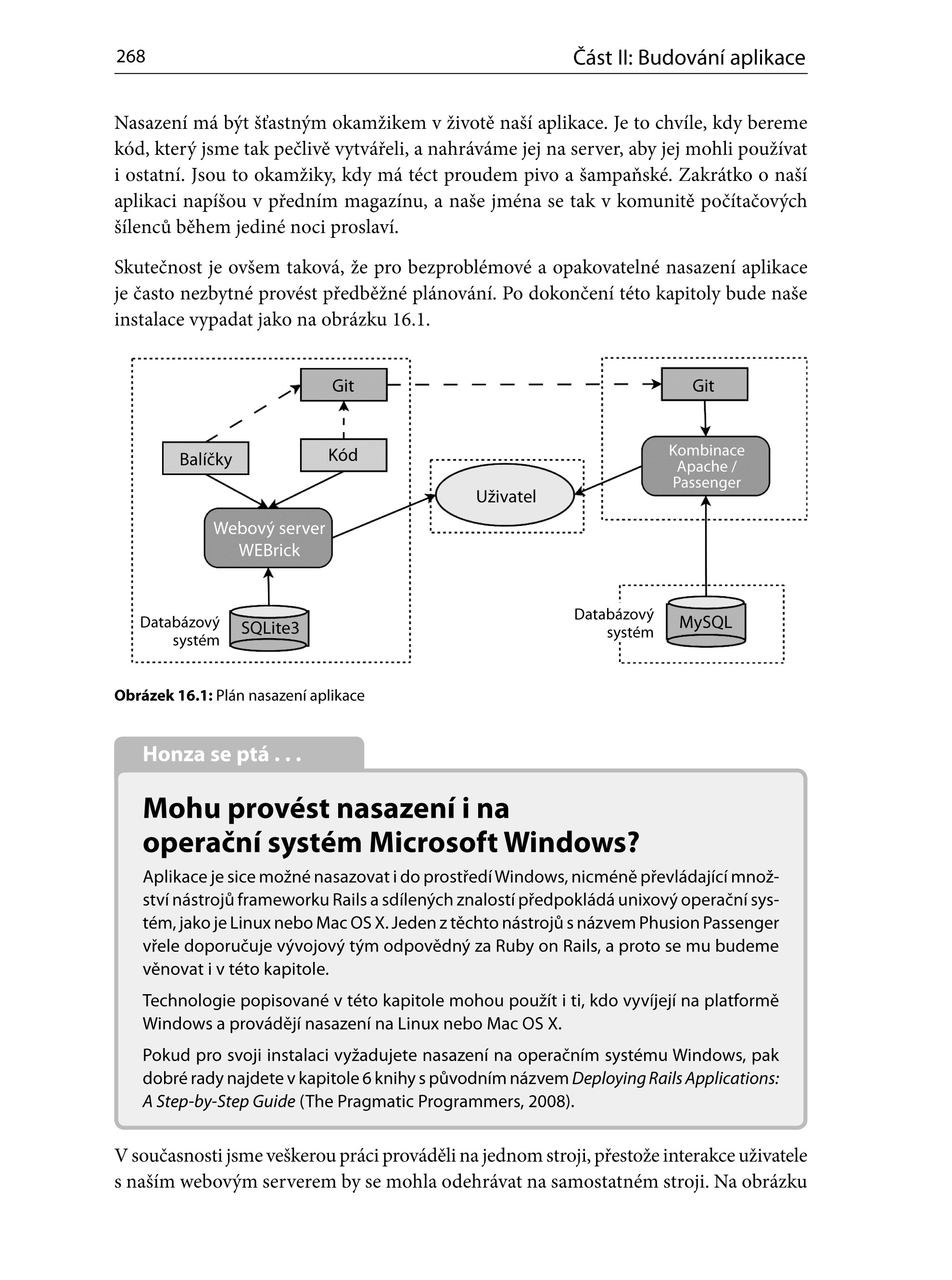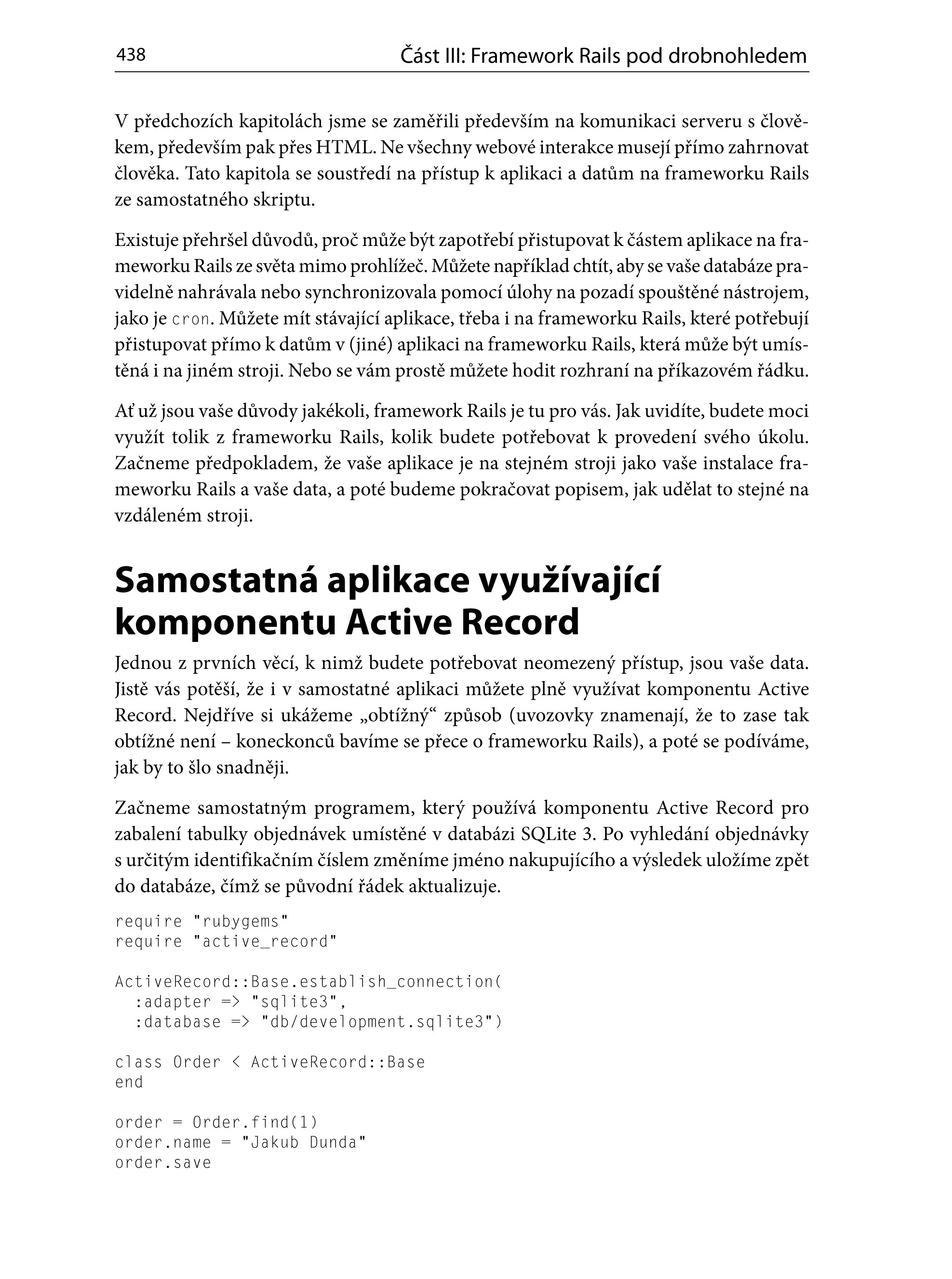 S trojicí zkušených autorů, mezi nimiž najdeme i tvůrce frameworku, se seznámíte s Ruby on Rails na vývoji komplexní webové aplikace. S každou přidanou funkcionalitou projektu se naučíte něco nového až po výslednou plně funkční aplikaci. Výklad postupuje od základů, nevyžaduje žádné předchozí znalosti s Ruby on Rails. V druhé polovině knihy se seznámíte s pokročilými postupy, jak využít možnosti frameworku na maximum.