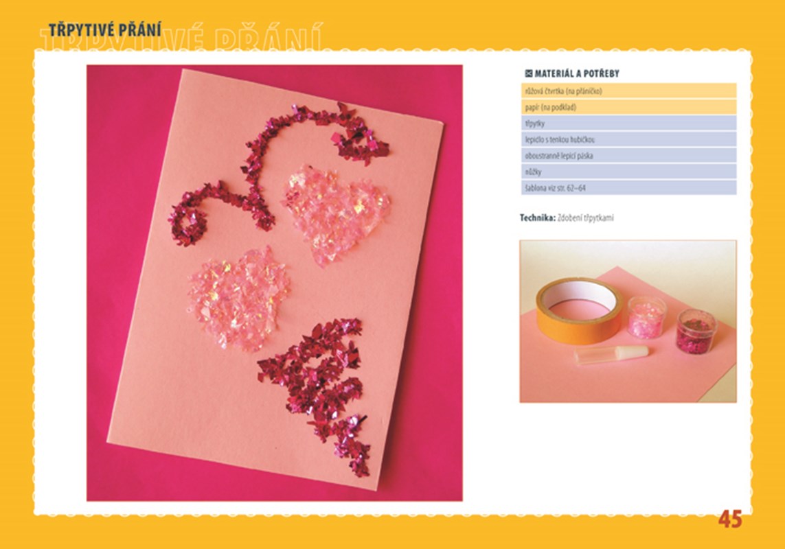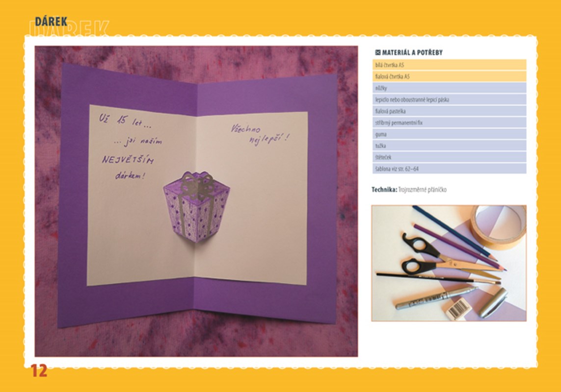 Slova vám nestačí? Vyjádřete se pomocí vlastnoručně vyrobeného přáníčka! Obdarovaný jistě ocení, že jste si dali s věnováním práci a „ušili“ mu ho na míru. Pokud pro svou tvorbu potřebujete inspiraci, je tato kniha určena právě pro vás, protože v ní najdete nejen informace o potřebných pomůckách, vhodných materiálech (např. origami papír, průklepový papír, textil, ubrousky apod.) a rozmanitých technikách (např. stříhání, skládání, proplétání, vosková batika, enkaustika, frotáž, foukací fixy, decoupage, scrabook apod.), ale také názorné návody na tvorbu 24 originálních přání k nejrůznějším příležitostem (např. narozeniny, Vánoce, Velikonoce, sňatek, Nový rok apod.).