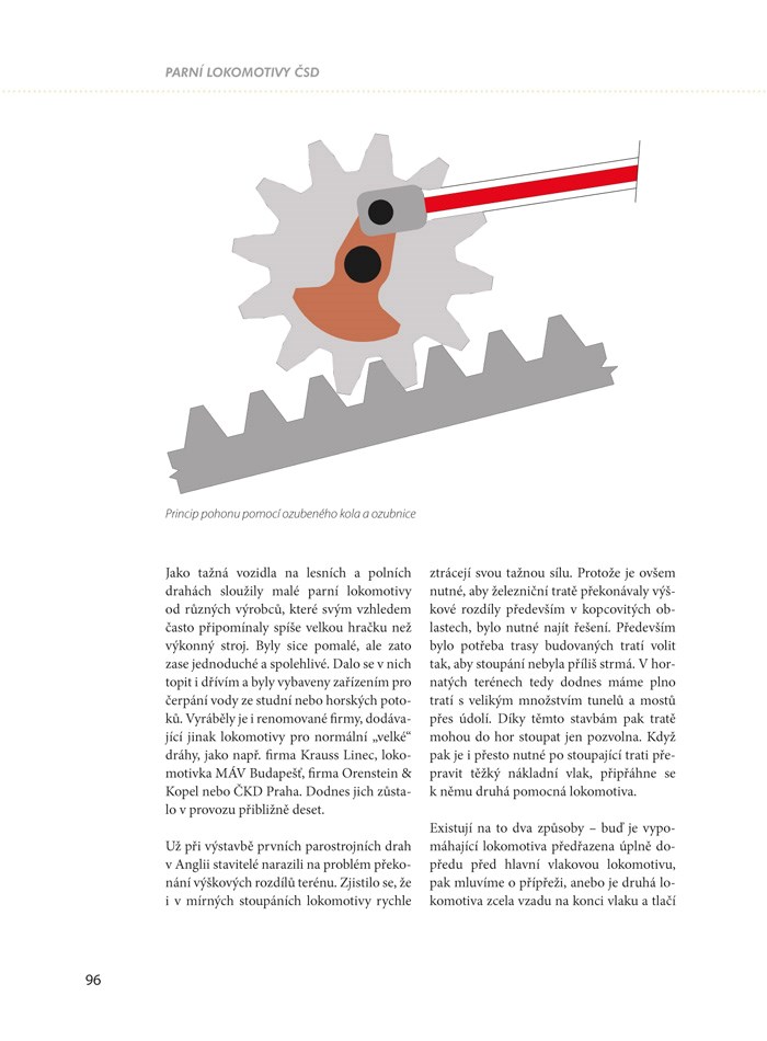 Kniha obsahuje atlas parních lokomotiv ČSD a seznamuje čtenáře s historií parního provozu na našem území, hlavními konstrukčními celky parních lokomotiv, jejich ošetřováním a údržbou, s číselným systémem označování lokomotiv, s parními vozy i speciálními parními lokomotivami. Kniha přináší rovněž zajímavé informace o úzkorozchodných drahách a koněspřežkách, které jsou spojeny s počátkem dějin železniční dopravy.