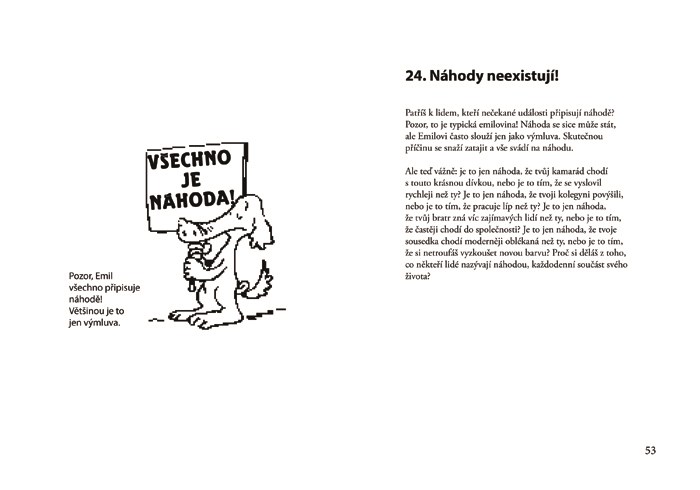 Emil je náš vnitřní našeptávač. Jak zasahuje do našeho života? Dokážeme odolat jeho vábení? Umíme si připustit, že je to on, kdo nás zbytečně tlumí v aktivitě? Přečtěte si více než 100 ilustrovaných rad – a zjistíte, jak vnitřního našeptávače zkrotit!