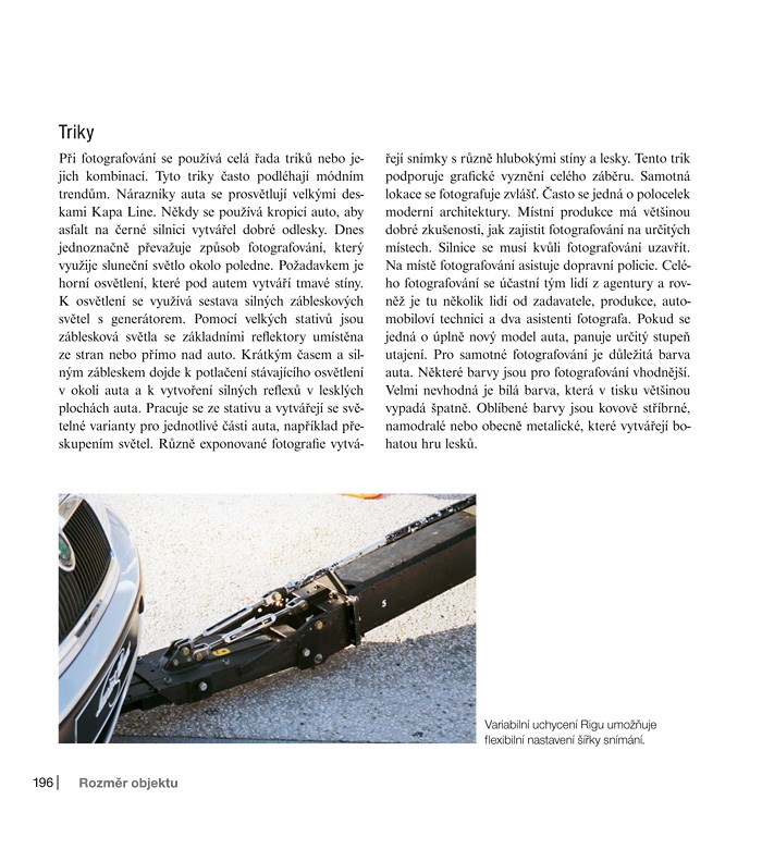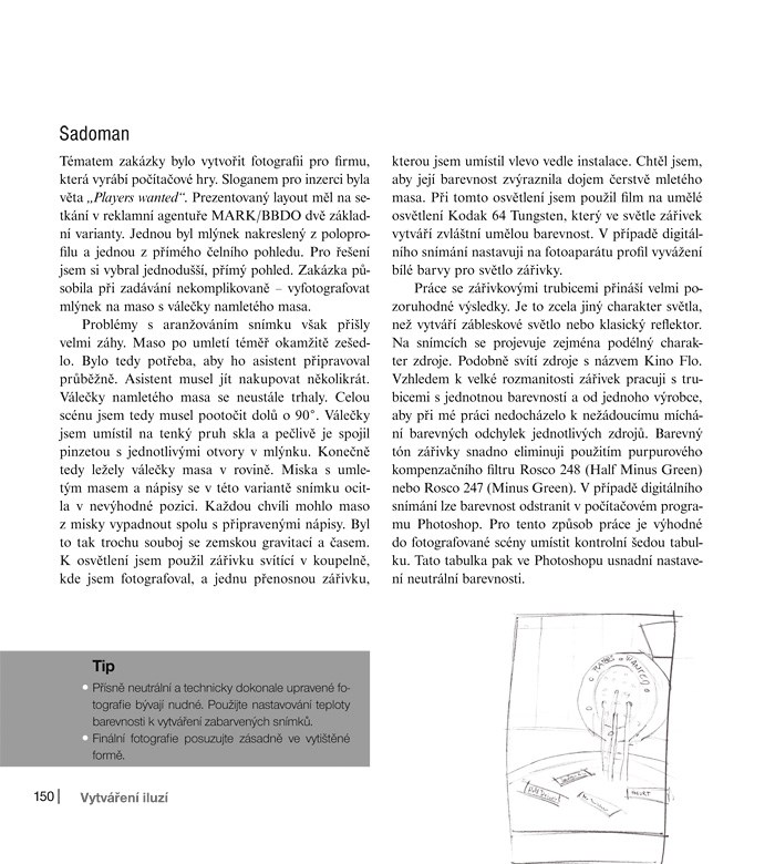 Nechte se inspirovat a osvojte si neobvyklé fotografické postupy, abyste dokázali pořídit výjimečný snímek pro každé zadání. Otištěné ukázky doplňují detailní informace o pozadí jejich vzniku, podrobné nákresy rozmístění světel na scéně nebo autorovy pracovní skici, na jejichž základě se dobral výsledného záběru. Seznámíte se s průběhem fotografování nejrůznějších zadání od table-top snímků až po automobil v exteriéru a autor se s vámi rozdělí i o tipy na nejrůznější efekty a iluze, které pomohou vaše snímky ozvláštnit.