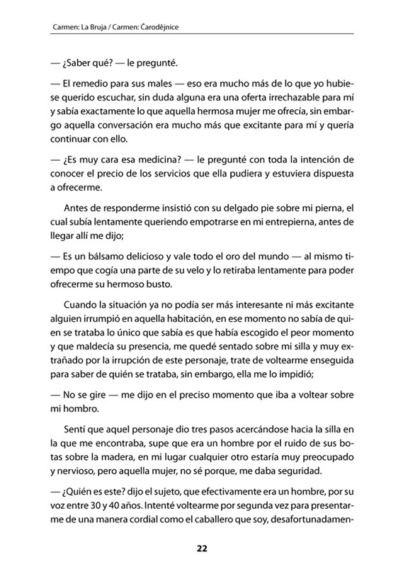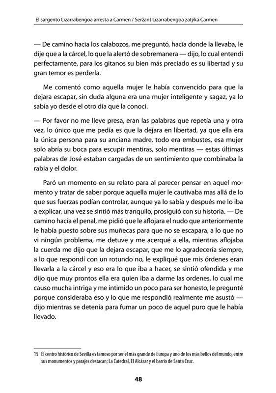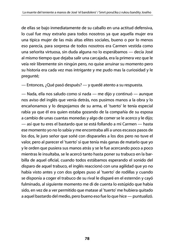 V knize kromě novely samé naleznete i její český překlad, jazykové i historické komentáře pod čarou a základní přehled španělské gramatiky. Povídku si můžete rovněž poslechnout na přiloženém CD namluvenou autorem - rodilým Kolumbijcem. CD obsahuje nahrávky ve formátu MP3. Věříme, že si četbou zdokonalíte své znalosti španělského jazyka.