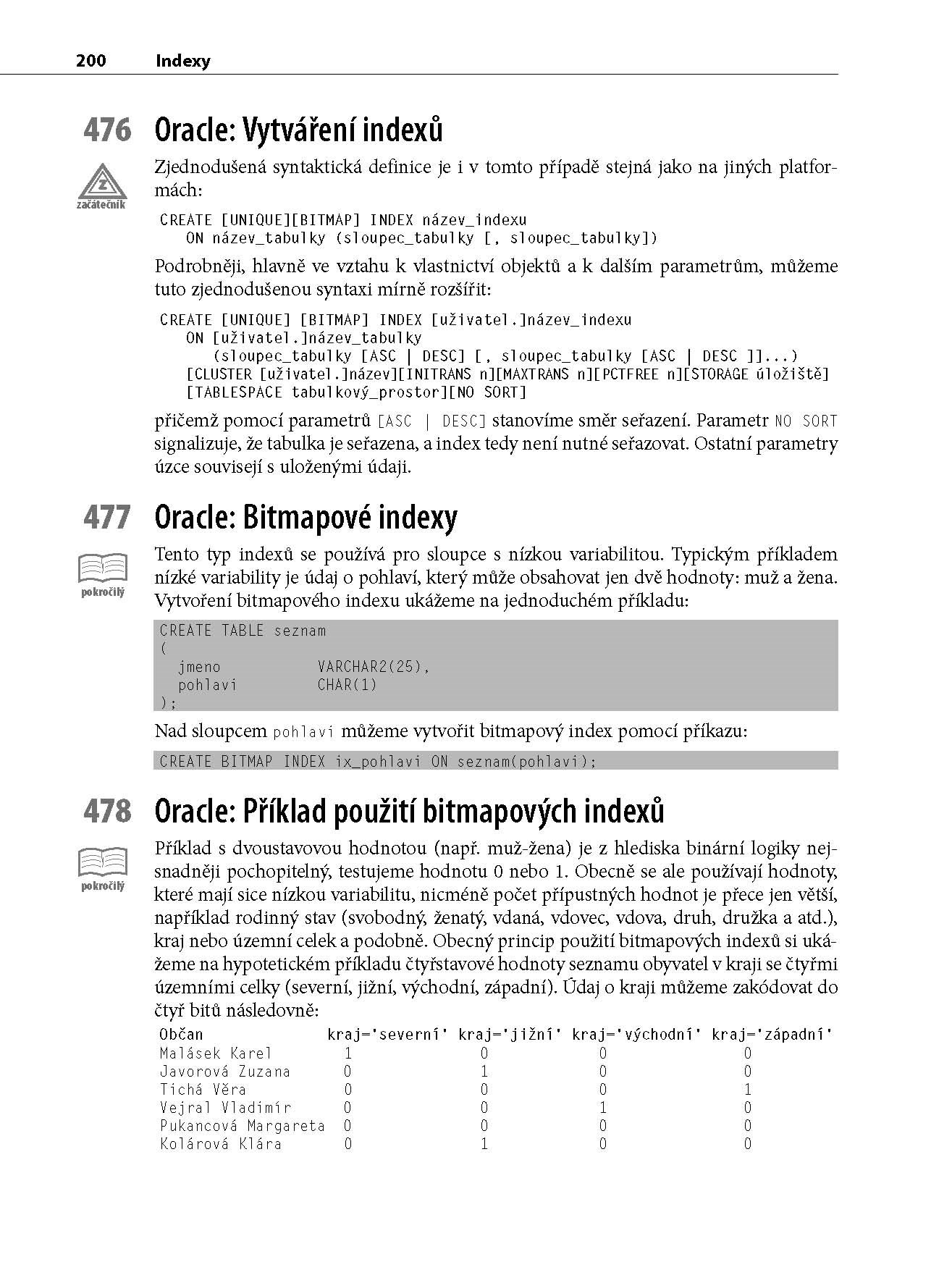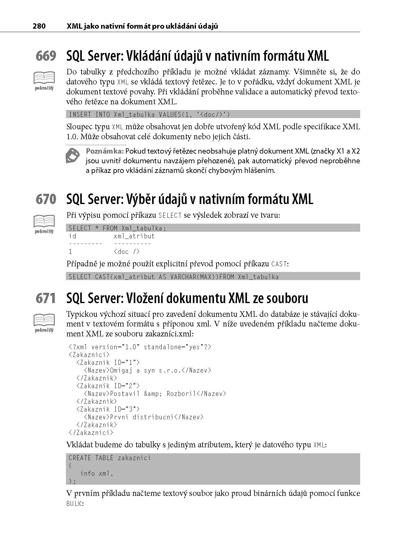 Zkušený autor, který patří mezi špičkové experty na problematiku databází, vás v krátkých radách a návodech seznámí nejen se základními operacemi, ale i řadou pokročilých technik, které řeší určitý specifický problém. Najdou zde inspiraci začátečníci, pokročilí, ale i profesionálové, kteří se bez SQL a databází ve svých projektech neobejdou. Jednotlivé rady jsou přehledně členěny do tématických sekcí, nalezení požadované odpovědi je tak dílem okamžiku.