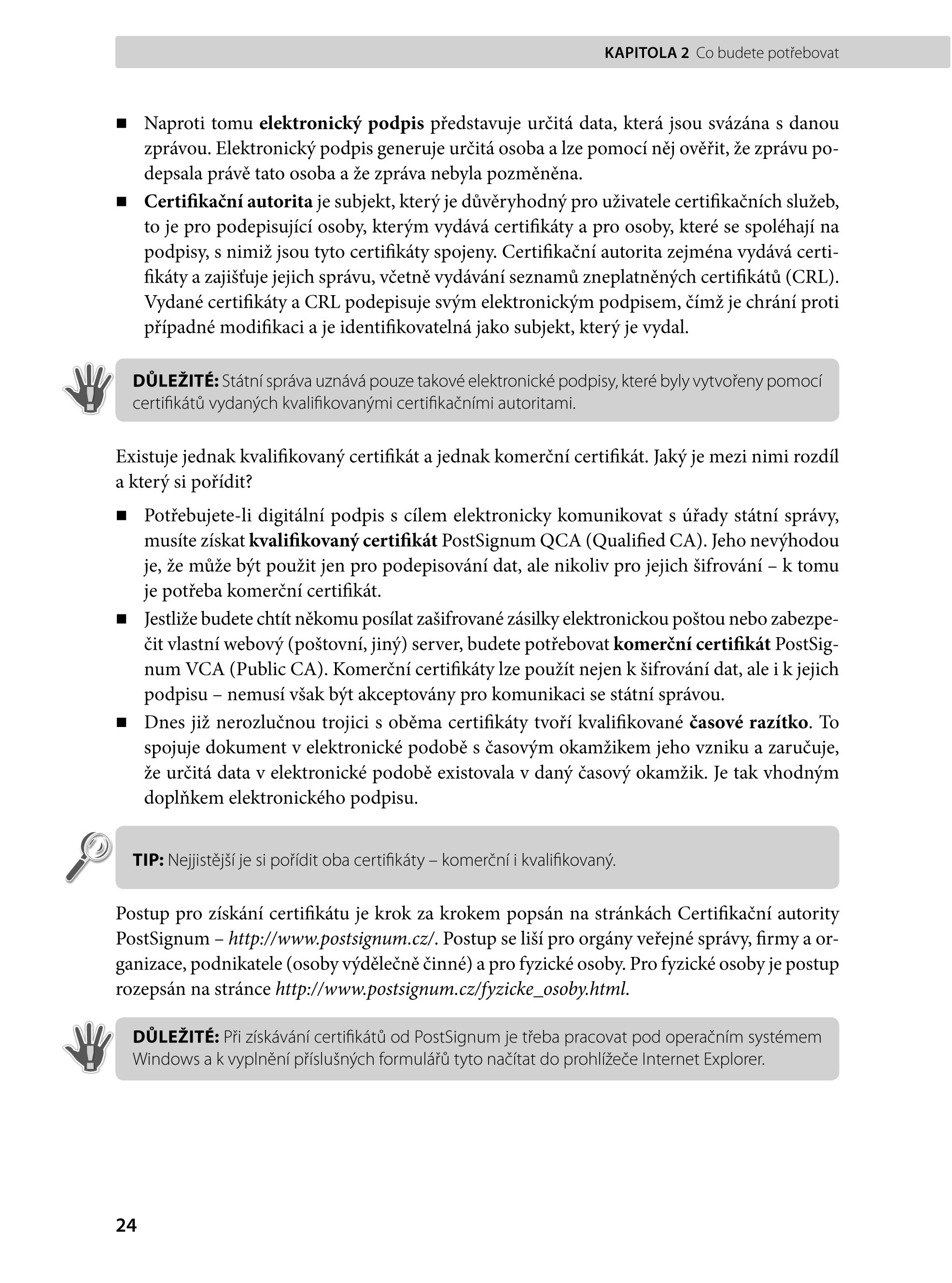 - Získání elektronického podpisu a časového razítka