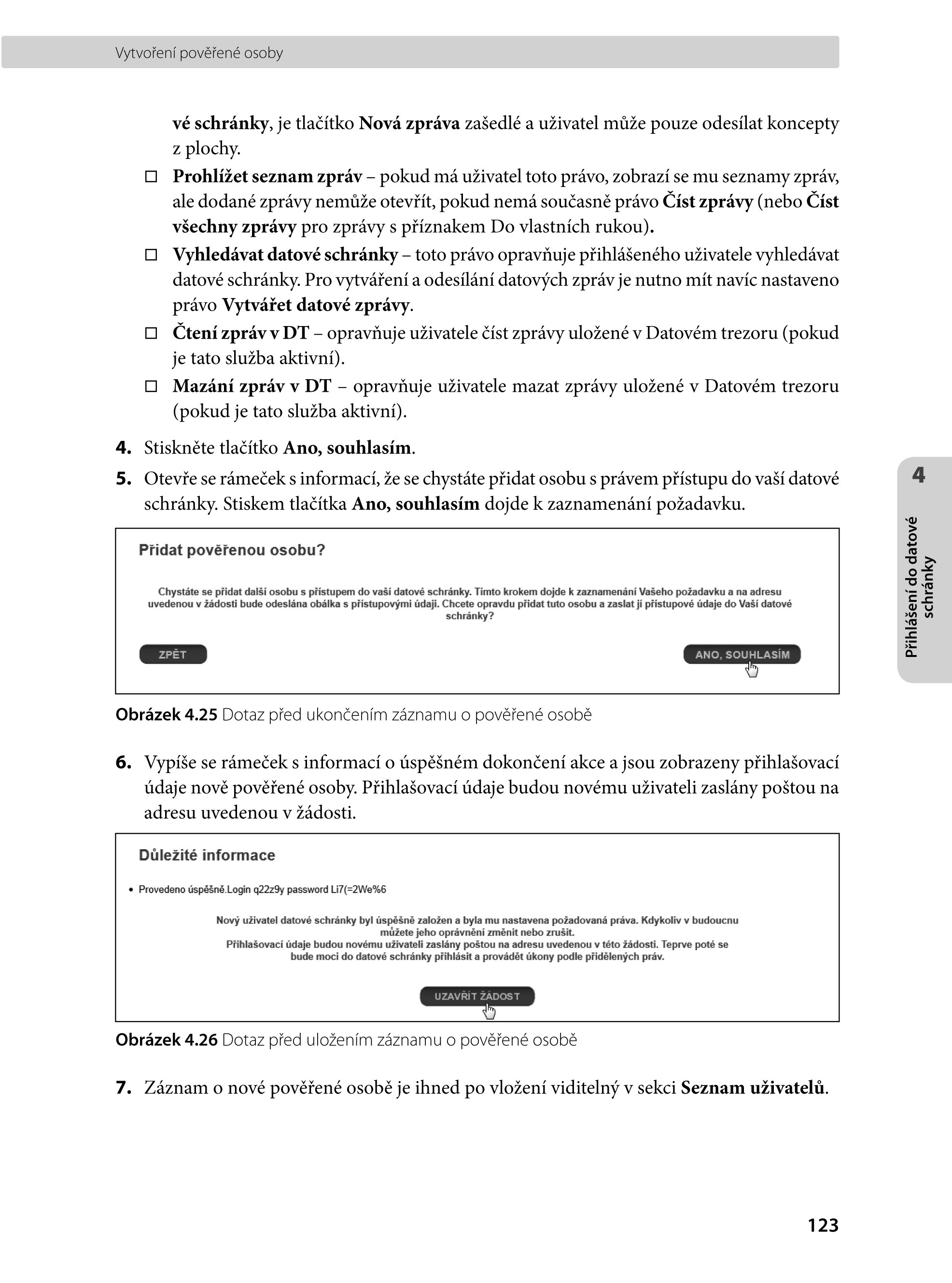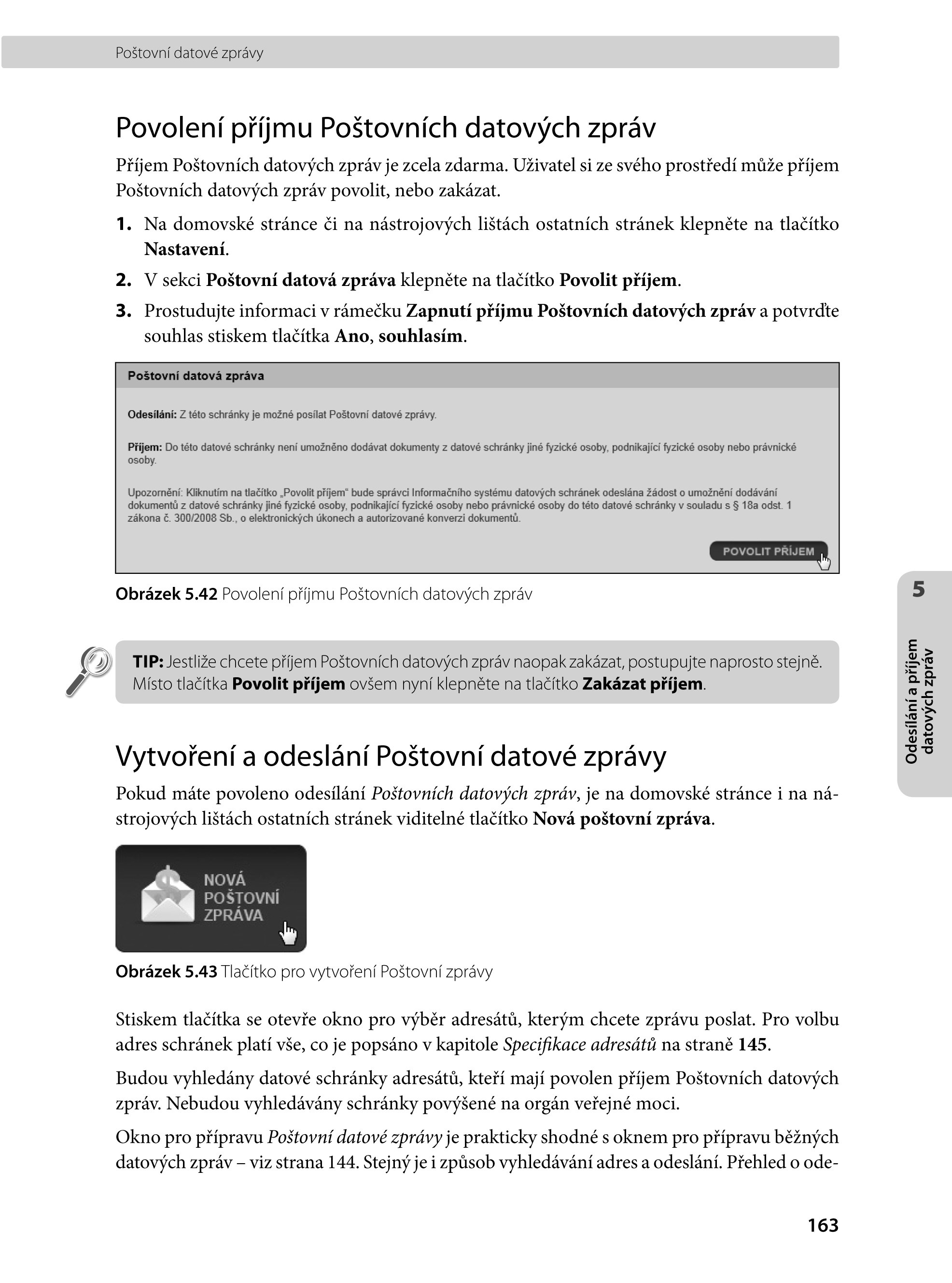 - Prohlížení, vytváření a tisk datových zpráv a odpověď na ně