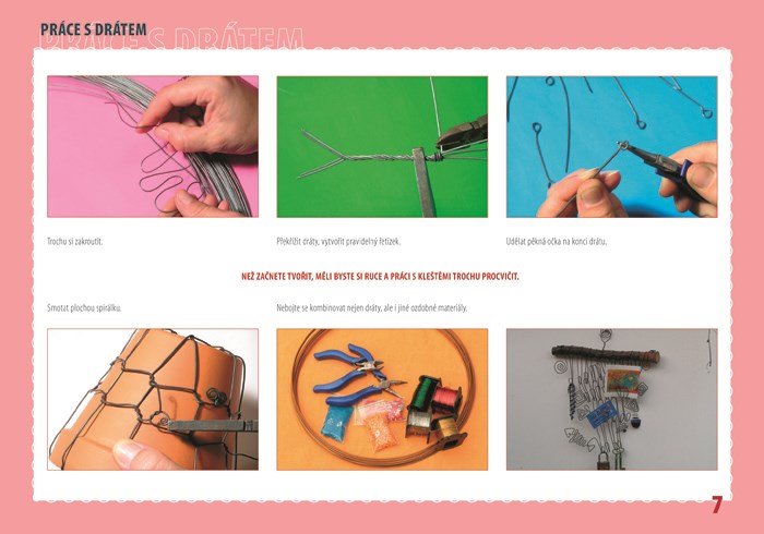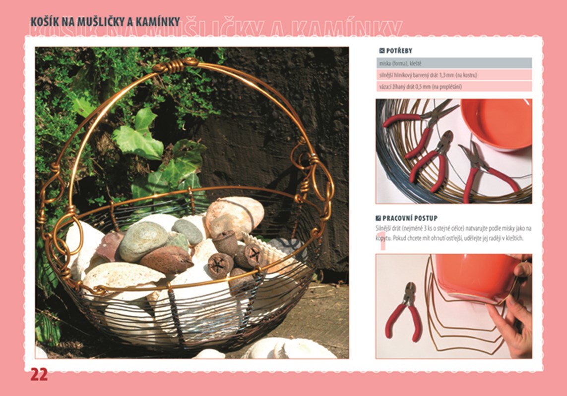 Zhotovte si krásné, praktické i umělecké výrobky z drátu s pomocí fotografických návodů a pokynů zkušené autorky, lektorky a členky Cechu českého a moravského uměleckého drátování. Projekty jsou rozděleny podle ročních období, takže si vždy vyrobíte to, co se zrovna hodí – na jaře si můžete odrátovat velikonoční vajíčka, květináč na bylinky či vyrobit okrasná zapichovátka s jarními motivy, v létě udělat košík na mušličky a kamínky z dovolené, párty vidličky a mobilní závěs, krásně cinkající ve větru na terase, na podzim odrátovat láhev na víno, k ní udrátovat nosič a mísu na ovoce, v zimě nachystat ozdobné svíčky s tácem a háčky na přání k Novému roku. Nechybí dobré tipy a šablony.