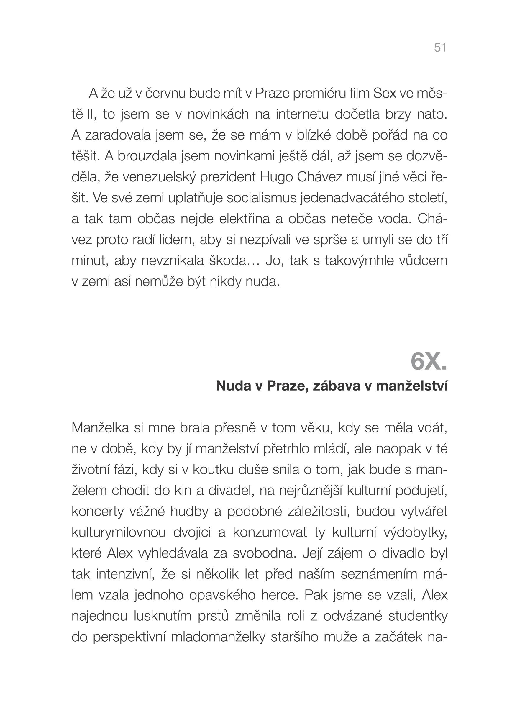 Po mimořádně úspěšné knize Expanze na Mars přichází Alex Hrouzková, nyní už Doležalová, s novou sbírkou fejetonů, opět na téma láska, sex a partnerské vztahy. Tentokrát se autorsky spojila s manželem, novinářem Jiřím X. Doležalem, který její ženský pohled doplnil mužskými postřehy.