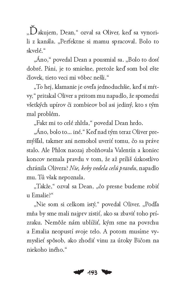 Oliver je presvedčený, že stratil svojich jediných kamarátov, Deana a Emaliu. Avšak Dean sa náhle objaví. Už nie je viac človekom, ale Oliver je aj tak nesmierne rád, že sa znova vrátil. Jeho návrat ale znamená mnoho nezodpovedaných otázok: kto ho privolal späť z hrobu? A prečo? Čo sa medzitým stalo s Emaliou? Má niečo spoločné s vraždami mladých upírov? Dokáže Oliver zistiť pravdu a zachrániť svojich priateľov?