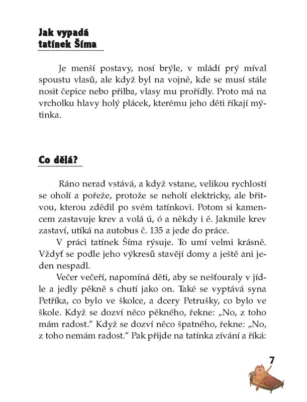 Pohádky na dobrou noc vyprávějí dětem obvykle maminky. Ty ale mívají právě večer v domácnosti nejvíc práce. A tak je potřeba, aby je tatínkové zastoupili. Tatínek Šíma by pohádky raději četl. Jenomže Petřík a Petruška dávají přednost takovým, jaké jim dříve povídala maminka: o zdánlivě obyčejných věcech kolem nás. A to není jednoduché, jak se možná na první pohled zdá. Však se tatínek Šíma s pohádkami pěkně natrápí! Podaří se mu vůbec se ctí se zhostit tak zapeklitého úkolu? Něco už vám napoví sám název téhle báječné knížky…