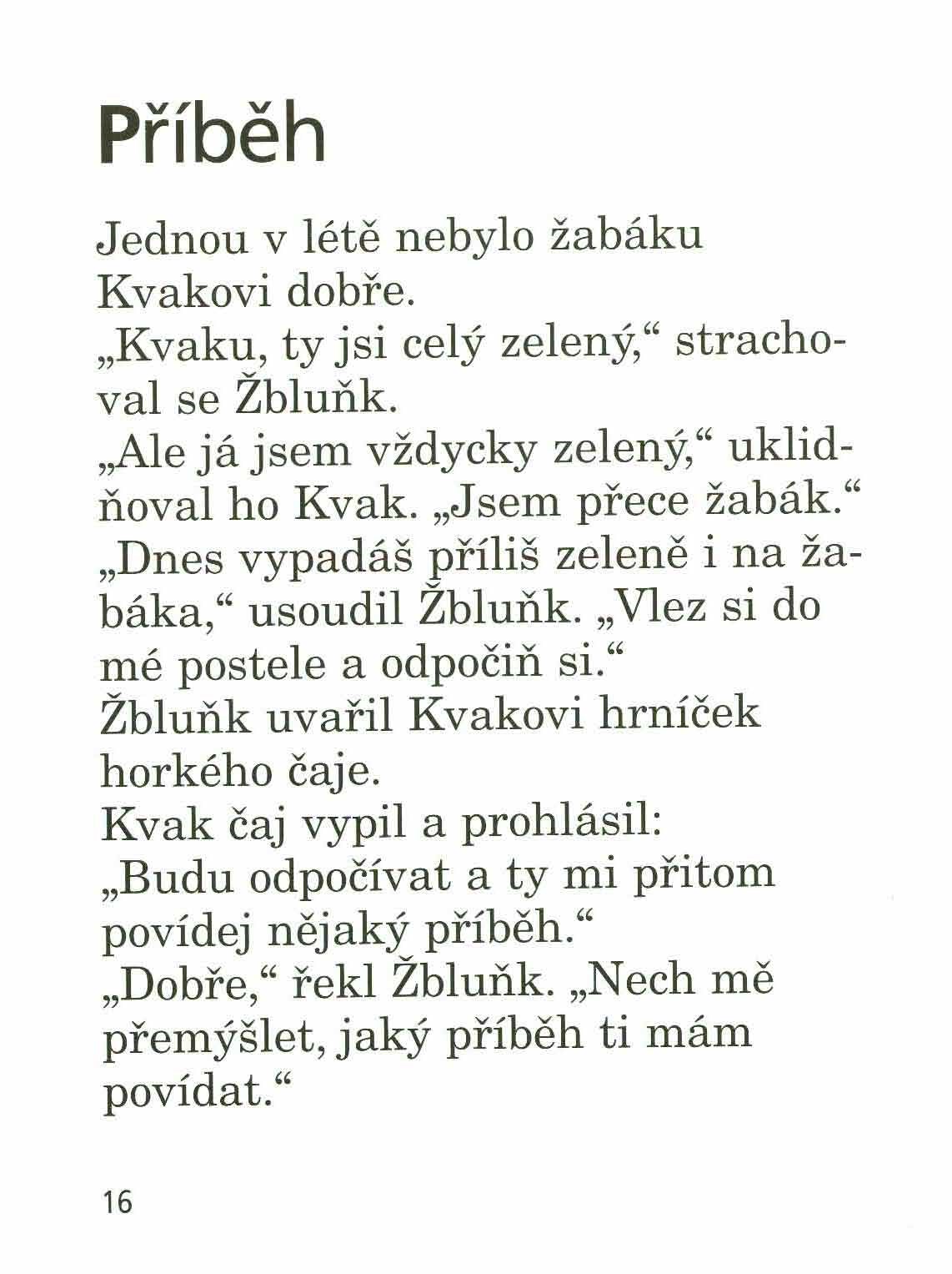 Úsměvné a hřejivé vyprávění o dvou kamarádech, zeleném žabákovi Kvakovi a hnědém ropušákovi Žbluňkov...