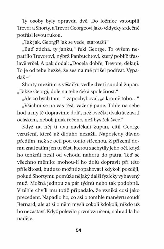 Pětici seniorů, tři muže a dvě ženy, odsoudily jejich životní osudy k tomu, aby závěr života trávili společně v chátrajícím a osamělém venkovském domě. Všem už je přes sedmdesát, ale s žádným z nich život nezacházel příliš pěkně. Někteří se nemají navzájem moc rádi a chovají se k sobě podle toho, skrytě či otevřeně; v žádném případě nejde o soudržnou partu starců, kteří se snaží jeden druhému ulehčovat břemeno věku. Jejich soužití má v důsledku vzájemné nevraživosti často groteskně trapný, absurdní ráz (Amis byl v líčení takových situací skutečný mistr), ale i když se při čtení často výborně bavíme, občas nám z toho všeho takříkajíc trnou zuby. A konec příběhu leckoho z nás přímo zmrazí.
