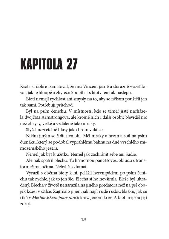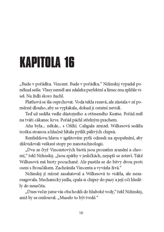 Nano. Svět uvnitř lidského těla, svět v mase, svět mezi nervovými zakončeními. A v něm se odehrává bitva mezi těmi, kdo chtějí ovládnout lidskou mysl, a těmi, kdo jim v tom chtějí zabránit. Mezi nimi jsou i Noah a Sadie, jejichž blízké zničil boj o moc, který vedou bratři Armstrongovi, podivná Dvojčata, která touží ovládnout svět a vytvořit utopickou společnost bez konfliktů a válek, bez hladu a strádání. Jenže jak vést válku v nanosvětě, kde stačí šikovně „předrátovat“ pár nervových spojení a z člověka je rázem jen loutka? Strhující thriller, který balancuje na tenké hranici mezi realitou a šílenstvím.
