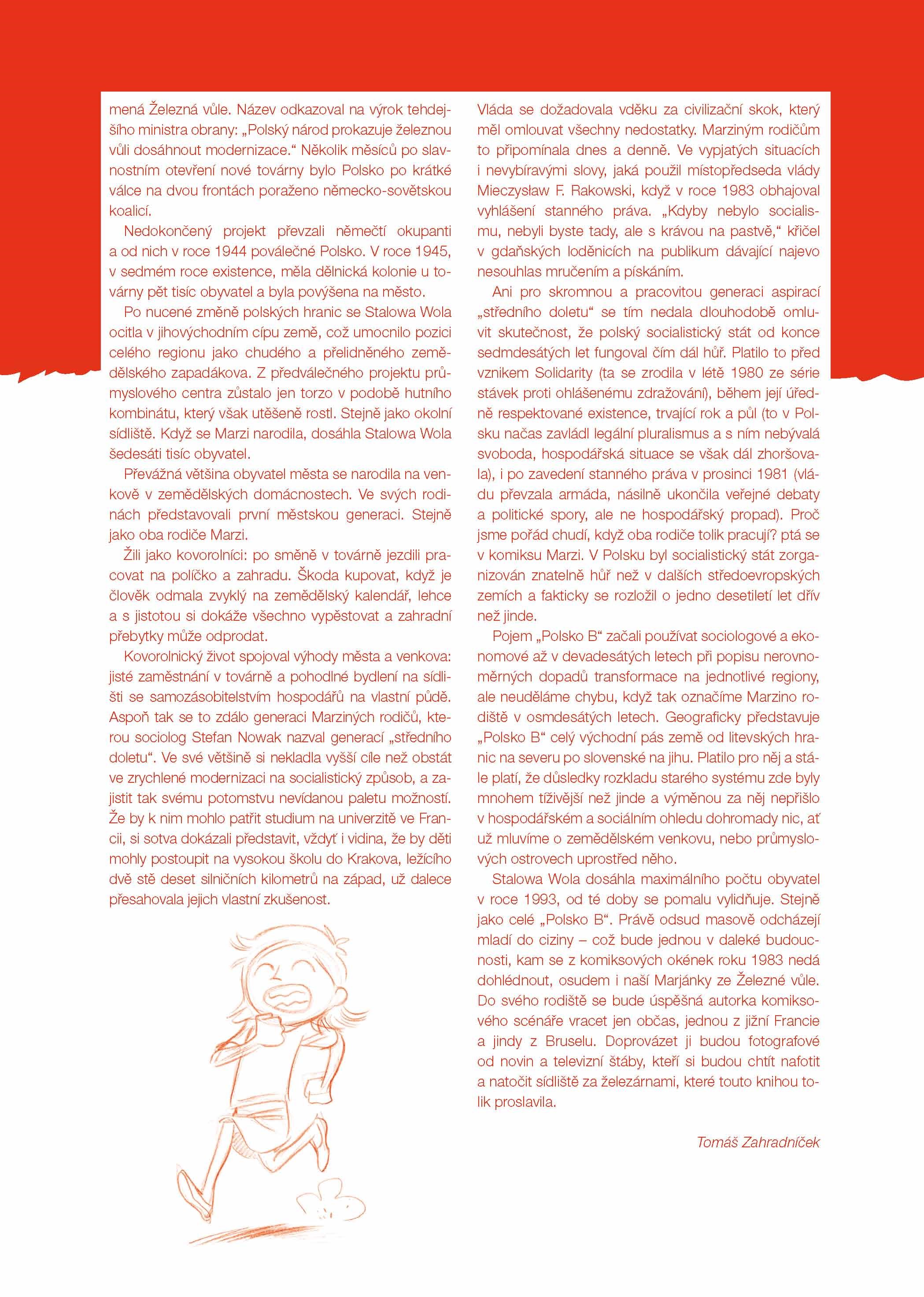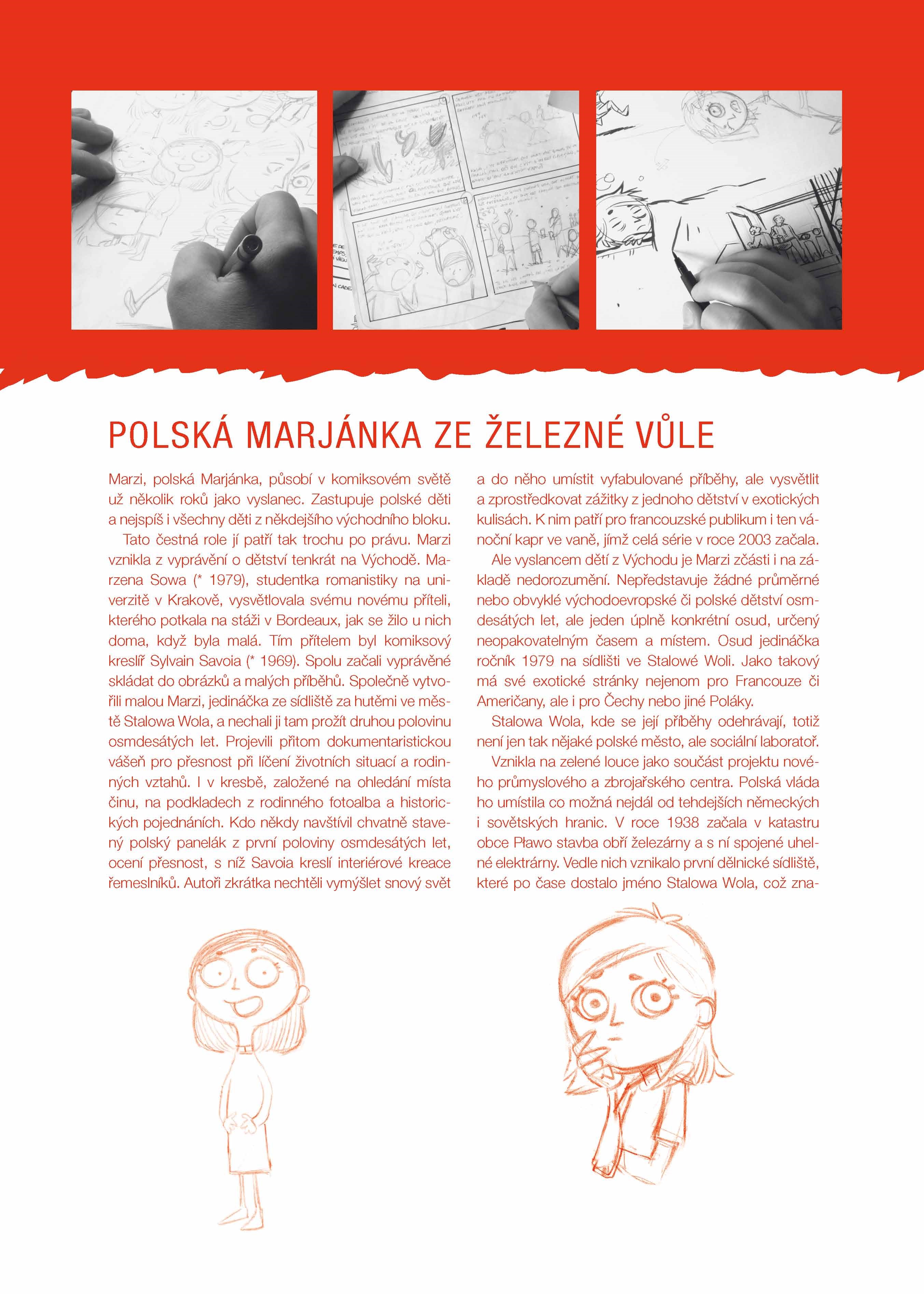 Marzi, polská Marjánka, působí v komiksovém světě už několik roků jako vyslanec. Zastupuje polské děti a nejspíš i všechny děti z někdejšího východního bloku. Marzi vznikla z vyprávění o dětství tenkrát na Východě. Marzena Sowa (* 1979) vysvětlovala svému novému příteli, kterého potkala na stáži v Bordeaux, jak se žilo u nich doma, když byla malá. Tím přítelem byl komiksový kreslíř Sylvain Savoia (* 1969). Spolu začali vyprávěné skládat do obrázků a malých příběhů. Společně vytvořili malou Marzi, jedináčka ze sídliště za hutěmi v polském městě Stalowa Wola, a nechali ji tam prožít druhou polovinu osmdesátých let.