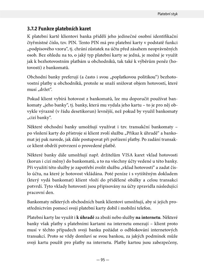 - formami a nástroji platebního styku (hotovostního i bezhotovostního, tuzemského i zahraničního),