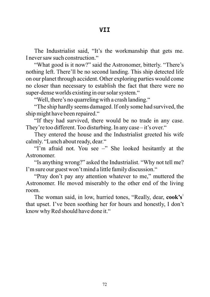 Je jednou z nemnoha povídek Isaaca Asimova (asi 2. 1. 1920 – 6. 4. 1992), ve které se objevují mimozemšťané.