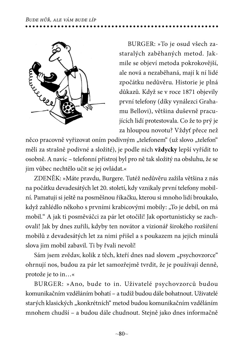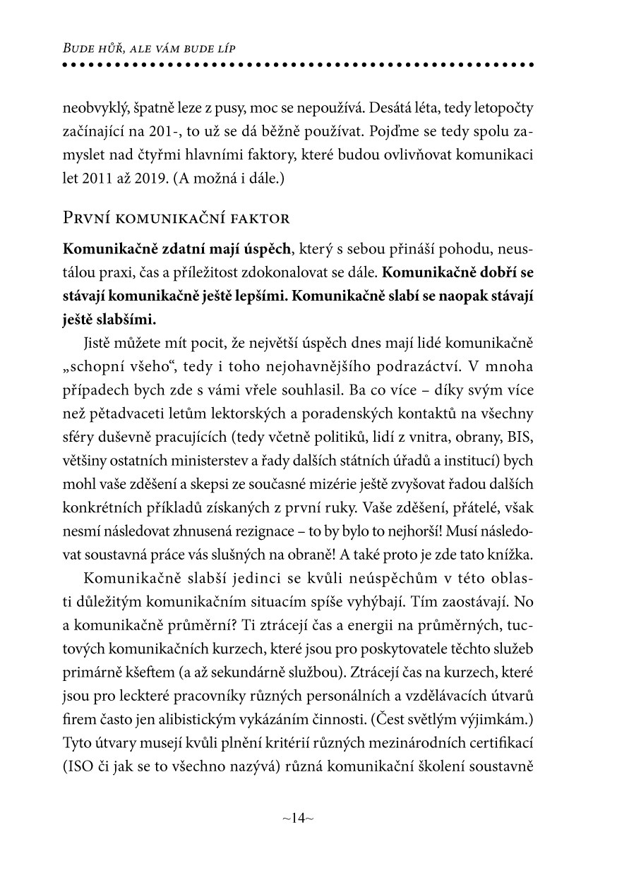„Vše ve vašem životě se točí kolem komunikace. Jste ve svém životě a ve společnosti tím, jenom tím a právě tím, co si ,vykomunikujete‘. Co si vyřídíte a zařídíte svými komunikačními schopnostmi.“