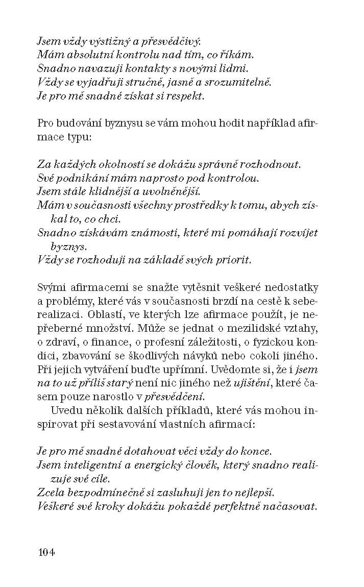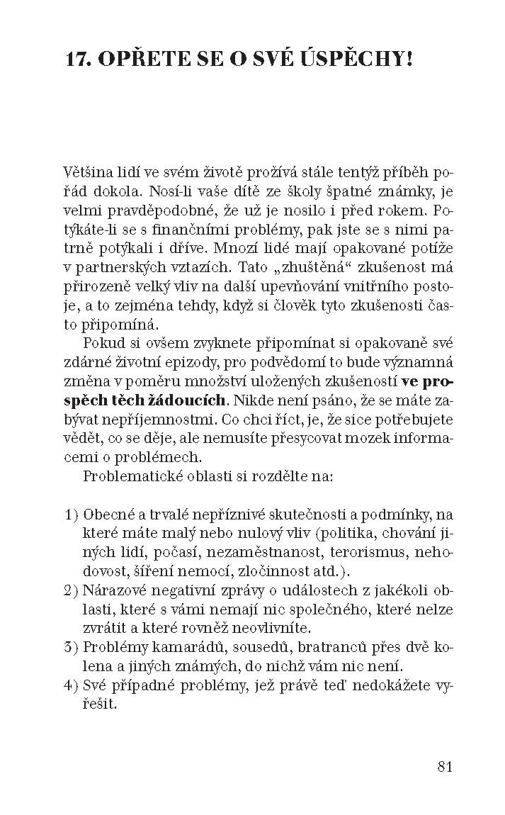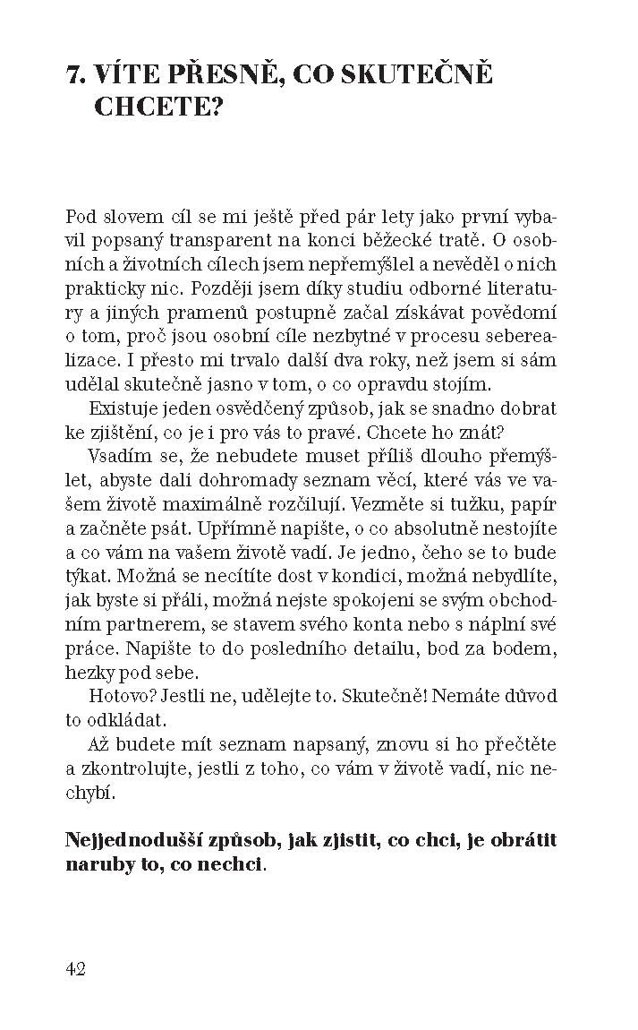Kniha Jiřího Zábranského přináší mnoho užitečných rad, poznatků a praktických kroků, které ve spojení s nejnovějšími poznatky moderní vědy tvoří návod, jak dosáhnout každého cíle, který jste si vytyčili.