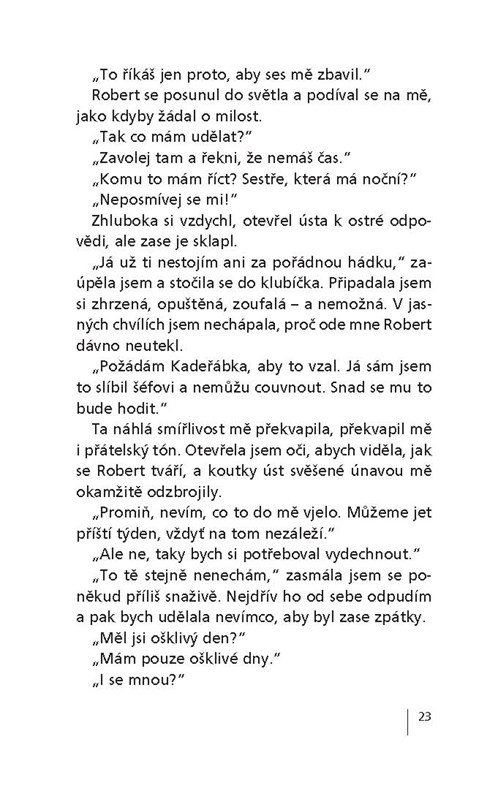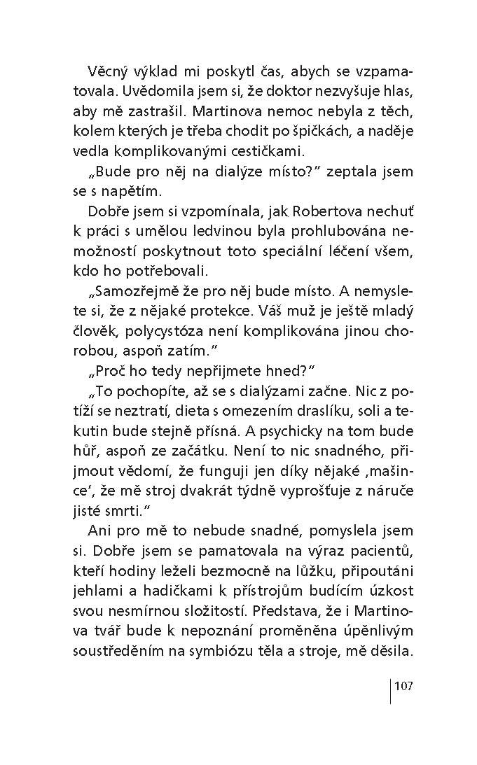 Komorní příběh třiatřicetileté magistry farmacie Heleny, která udržuje milostný vztah s lékařem z dialyzační jednotky Robertem. Ten jí však jednoho dne oznámí, že odjíždí jako praktický lékař do Pákistánu. Helena je nejdříve jeho rozhodnutím zaskočena a samotu těžko snáší, ale jednoho dne potká Martina a je z toho láska na první pohled a brzy i svatba. Helenino štěstí však netrvá dlouho. U jejího muže je zjištěna vážná ledvinová choroba, a on se tak stane pacientem na Robertově bývalém pracovišti. Právě v tom okamžiku se z Pákistánu vrací Robert. Helena zjišťuje, že jí stále ještě není úplně lhostejný. Také Robert chce, aby se k němu vrátila, a Helena tedy musí volit mezi dvěma muži – Robertem, který ji zklamal, a vážně nemocným Martinem.