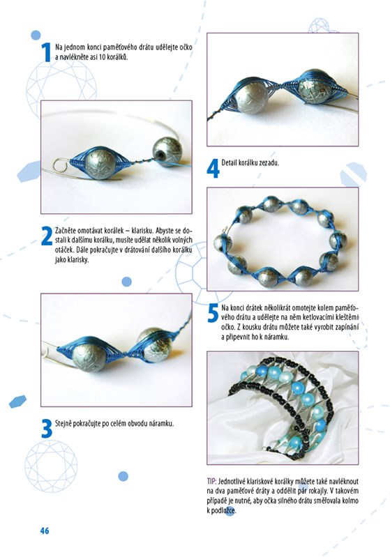 Pokud rádi pracujete s korálky a chtěli byste si vyzkoušet také drátování, držíte v rukou správnou knihu. Drátků se není třeba bát a v kombinaci s korálky si vyrobíte šperky, které budete s hrdostí nosit. V první kapitole se seznámíte s používanými materiály a pomůckami, dále se krok za krokem naučíte jednotlivým drátovacím technikám a postupům jako je např. výroba spirály, korálkový výplet či drhání. Poté se již můžete bez obav pustit do výroby 24 originálních šperků – náramků, náhrdelníků, prstýnků, náušnic a broží.