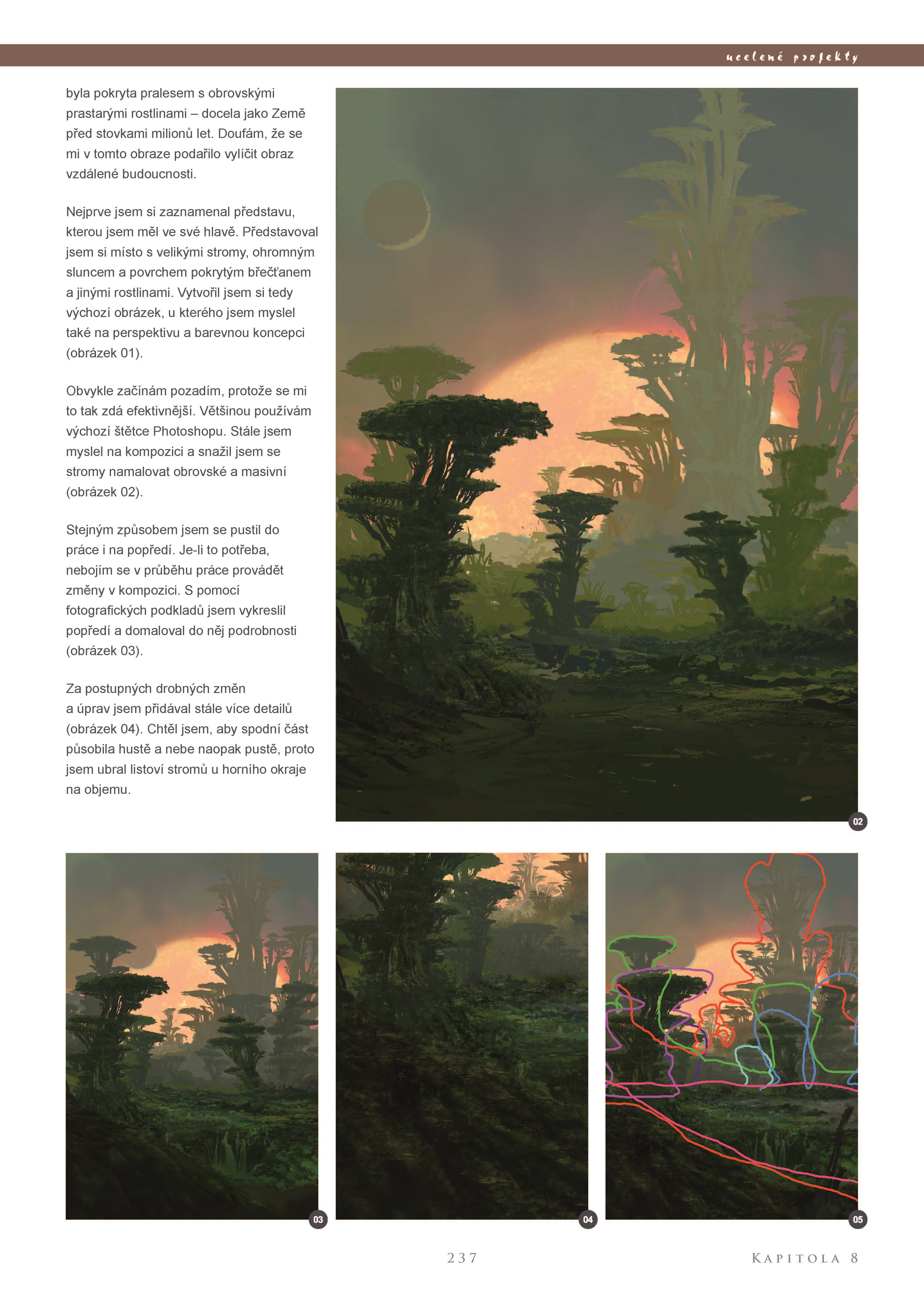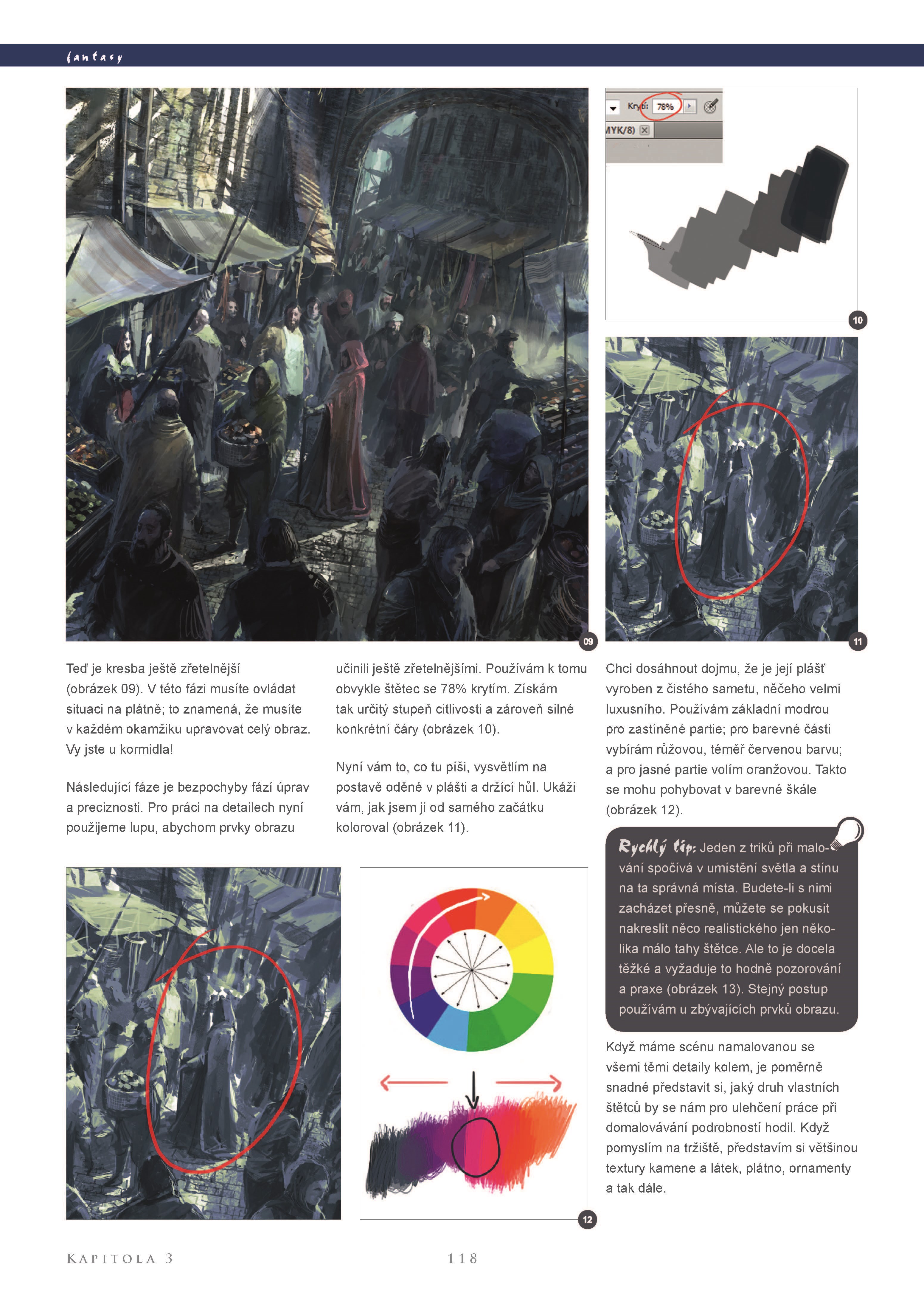 Mladí talentovaní umělci vám prostřednictvím ucelených profesionálních grafických projektů od A do Z odhalí postupy a tajemství své práce. Široká tematika obrazů sahá od realistických konstrukcí dopravních prostředků a budov přes vykreslení atmosféry vhodné pro dané místo a okamžik až po dynamické postavy z říše fantasy a sci-fi . Kniha vám poskytne nejenom rozsáhlé know-how, ale poslouží také jako hluboký zdroj inspirace pro vaši další komerční i osobní tvorbu. Tutoriály jsou obohaceny o množství tipů, které zefektivní, urychlí a usnadní vaši práci; nechybí ani využití klasických materiálů, fotografi í a ručních technik v prvních fázích náčrtů a výuka univerzálně platných principů kompozice a zarámování obrazu.