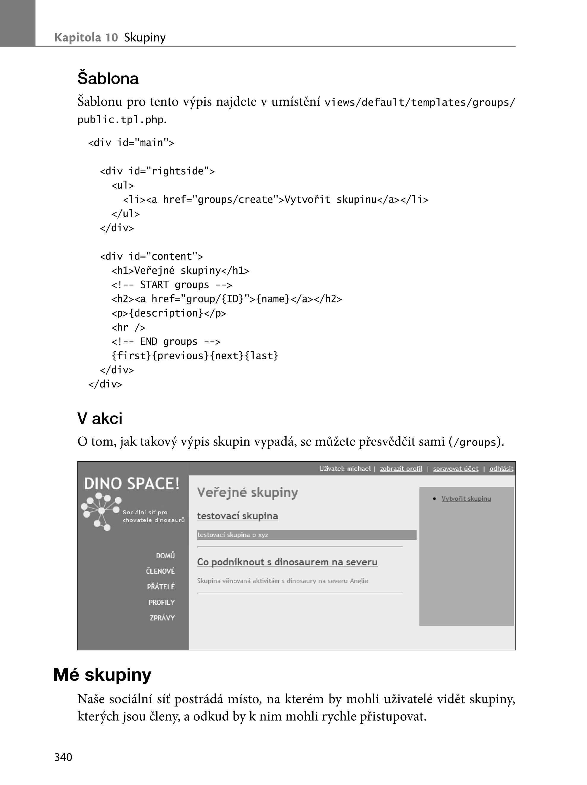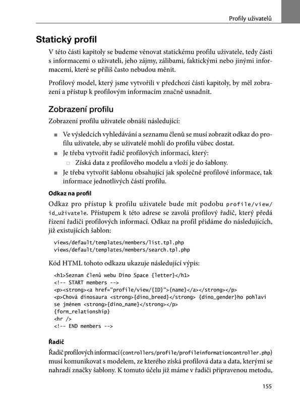Kniha vás ve 14 kapitolách provede vývojem vlastní, plně funkční sociální sítě. S autorem projdete krok za krokem plánováním, prvotním návrhem a vytvořením vlastního MVC frameworku, pomocí kterého budete do svého projektu postupně přidávat další užitečné funkcionality. Seznámíte se se správou uživatelských účtů, zabezpečením, možnými rozšířeními a způsoby, jak komunikovat s dalšími sociálními sítěmi. Nevynecháte ani možnosti propagace, SEO a fi nančního zhodnocení svého projektu.