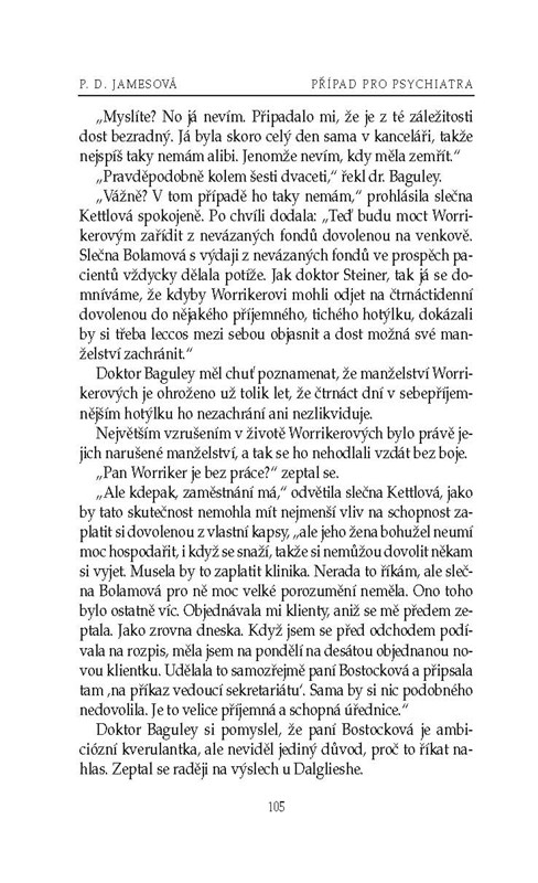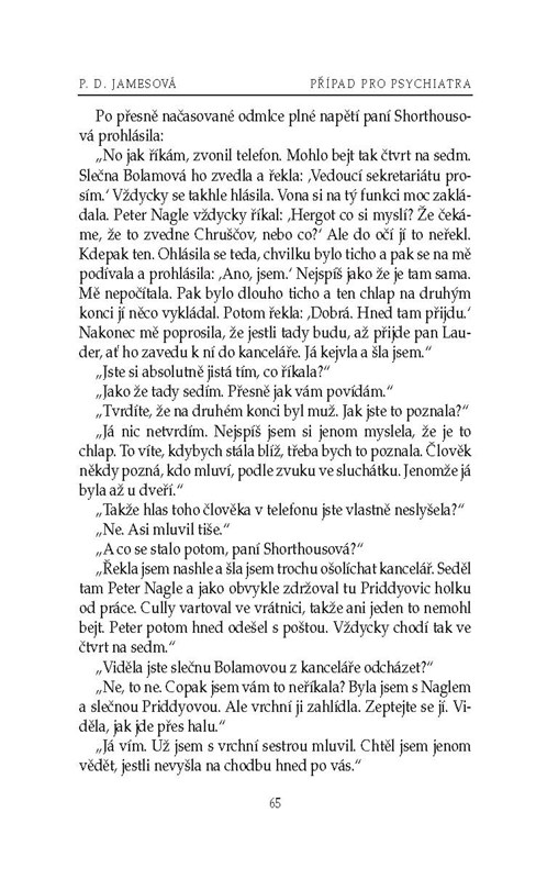 Na prominentní psychiatrické klinice je nalezena mrtvola brutálně zavražděné ženy. Případu se opět ujímá superintendant Dalgliesh