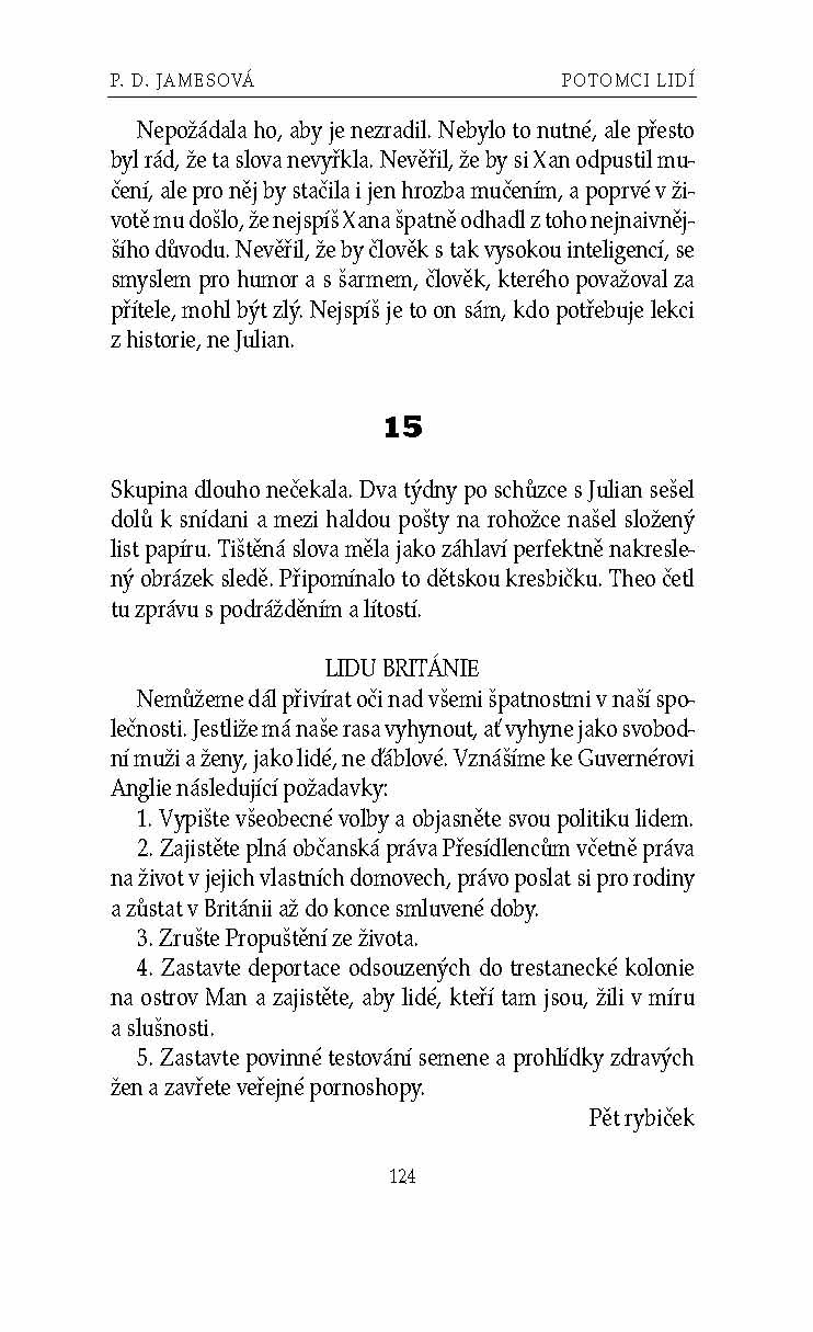 Jednoho dne ale přijde výzva… Ve světě, který podlehl anarchii a násilí, je Theo pověřen důležitým úkolem. Musí ochránit možná poslední naději lidstva – mladou těhotnou ženu.