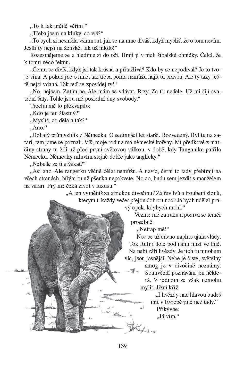Závěrečný díl volné trilogie (Smrt ve sloní trávě, Šepot buše, Ve stínu baobabů) o zvířatech, tajemstvích a magických obřadech Afriky se tentokrát zaměřuje na tajemné čarodějnické rituály, podivné události z historie i pátrání po některých vědě stále neznámých zvířatech, o jejichž reálné existenci jsou místní obyvatelé na základě svých zkušeností přesvědčení. Věnuje se ale i historii objevování těch, která dnes již ztratila svou záhadnou masku a stala se součástí běžné zoologie. To ovšem neznamená, že by autor zapomínal na to, co ho od jeho prvních cest do Afriky lákalo nejvíc – na velká divoká zvířata a s nimi prožitá dobrodružství. O tom svědčí i bohatá barevná příloha.