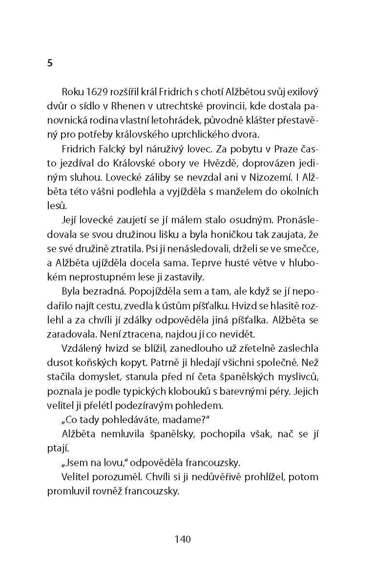 Historický román o manželce „zimního krále“ Fridricha Falckého o Alžbětě, dceři anglického krále Jakuba I.