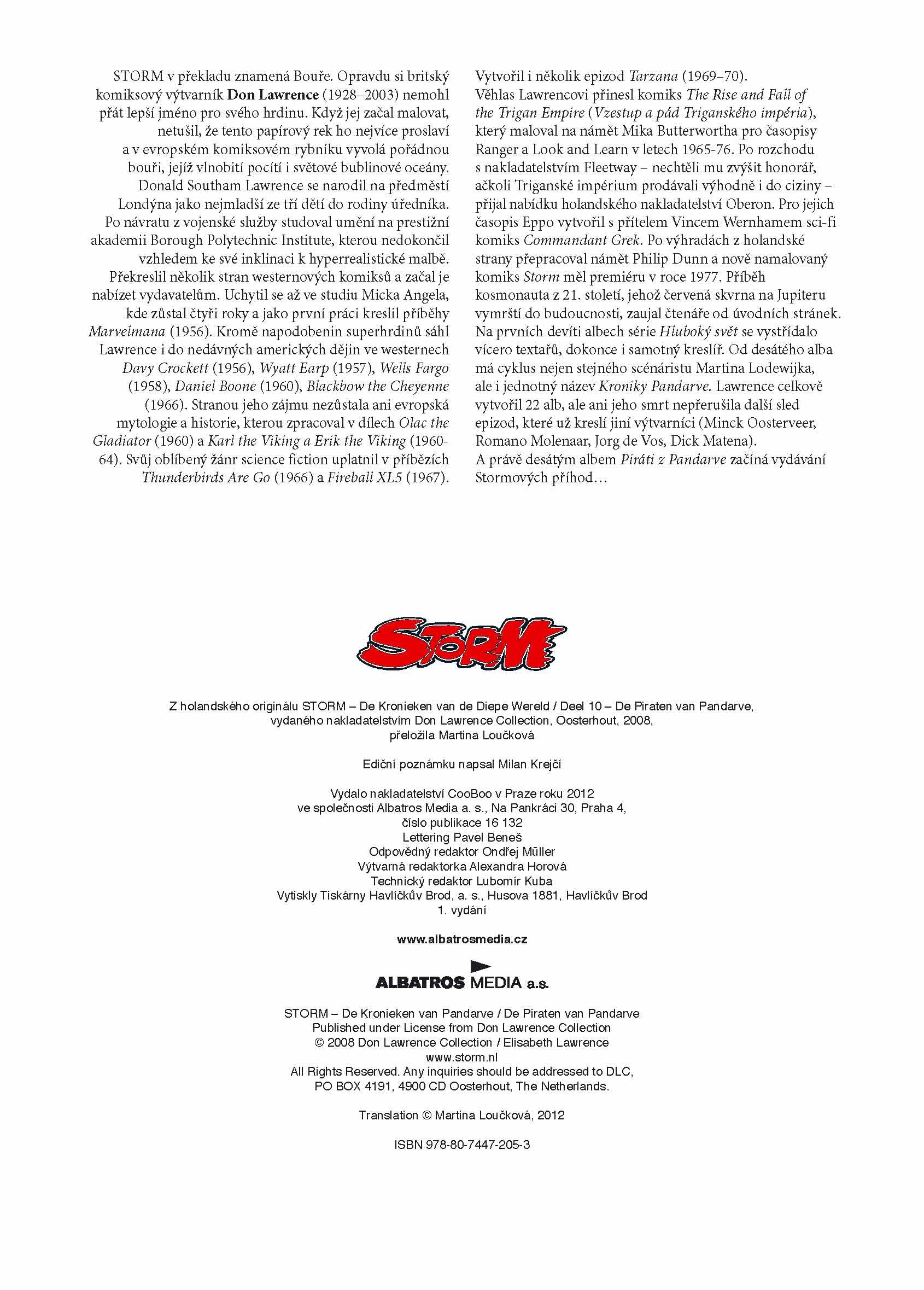 První české vydání Storma uvádíme chronologicky desátým příběhem, jímž začíná cyklus Kroniky Pandarve. Storm ovlivnil celou generaci výtvarníků, věnujících se žánru science fiction a science fantasy, zaslouženě se tedy dostává do rukou i českým příznivcům komiksu.