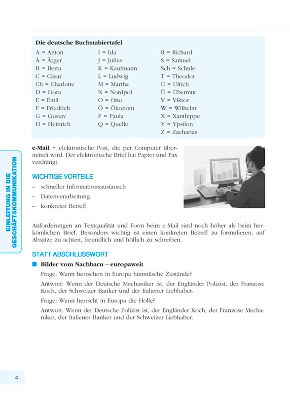 Učebnice Obchodní němčina je určena všem zájemcům o získání znalosti odborného jazyka používaného ve světě obchodu.