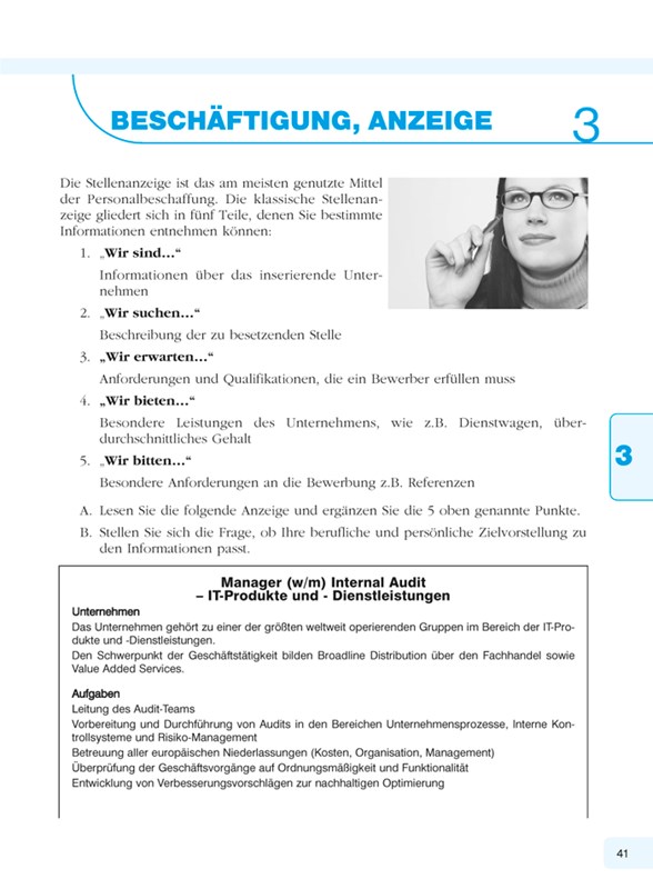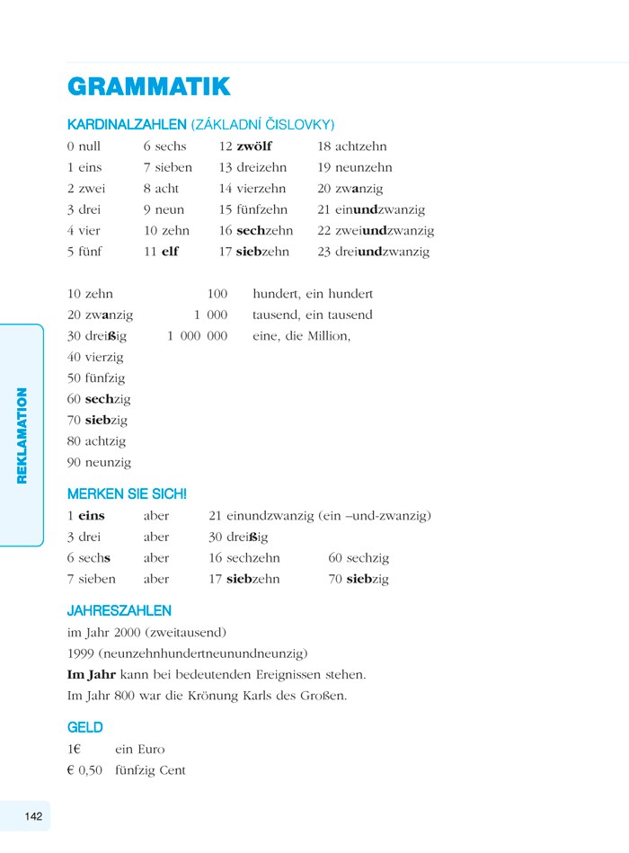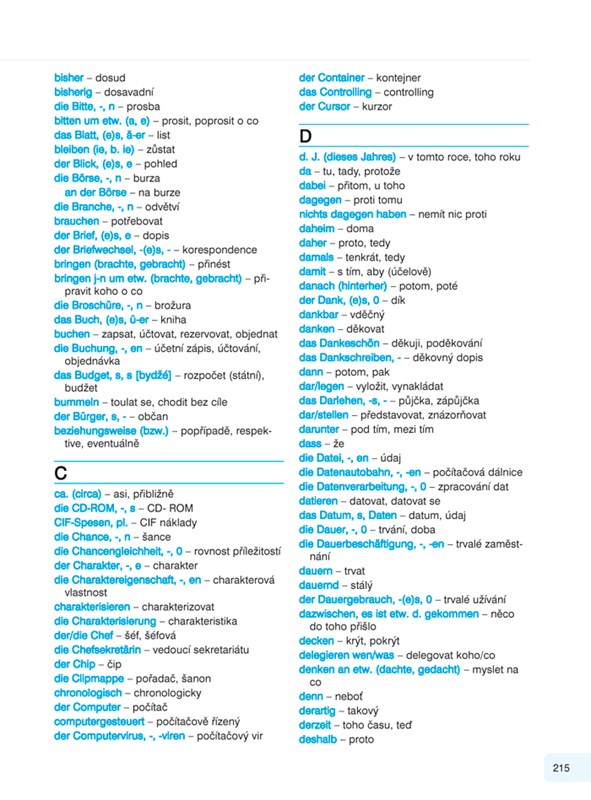 Na konci učebnice je zařazen přehled nepravidelných sloves, německo-český a česko-německý odborný slovník a klíč ke cvičením.