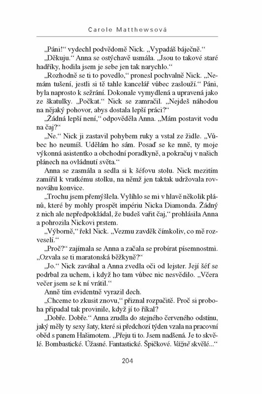 Anna Terryová je mladá matka dvou dětí, která má jeden rozvod za sebou a druhý před sebou. Manžel ji opustil před víc než rokem a nechal ji zcela bez prostředků. Nick Diamond je majitel neperspektivního autobazaru, kterého z domova vystrnadila manželka-vegetariánka kvůli řezníkovi. Dočasně přebývá u rodičů a snaží se vzdorovat přehnané péči své matky. Do čekárny právnické firmy oba zavede tentýž důvod – rozvod. A okamžitě si padnou do oka. Jenže než se jejich vztah stihne rozvinout, jejich ex-partneři se o ně začnou znovu zajímat a chtějí se k nim vrátit. A Anna i Nick mají pocit, že by jim měli dát další šanci… Ale co když se do sebe stihli doopravdy zamilovat? Nebudou svého rozhodnutí litovat?