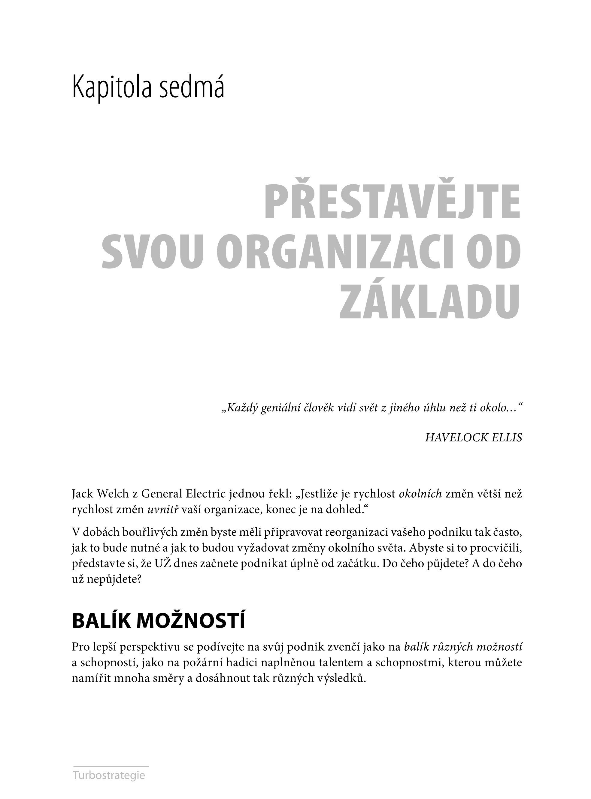 Sám autor svou Turbostrategii hodnotí jako „intenzívní, rychlý, krátký, srozumitelný a efektivní způsob jak nastolit a realizovat jakoukoliv strategii.“ Pomůže vám dosáhnout výsledků rychleji a snáze než kdykoli předtím. Tato kniha není kompletním návodem „jak na to" – je ale nejlepší možnou knihou, po které sáhnout, potřebujete-li informace, které nenajdete nikde jinde a které skutečně pomohou.