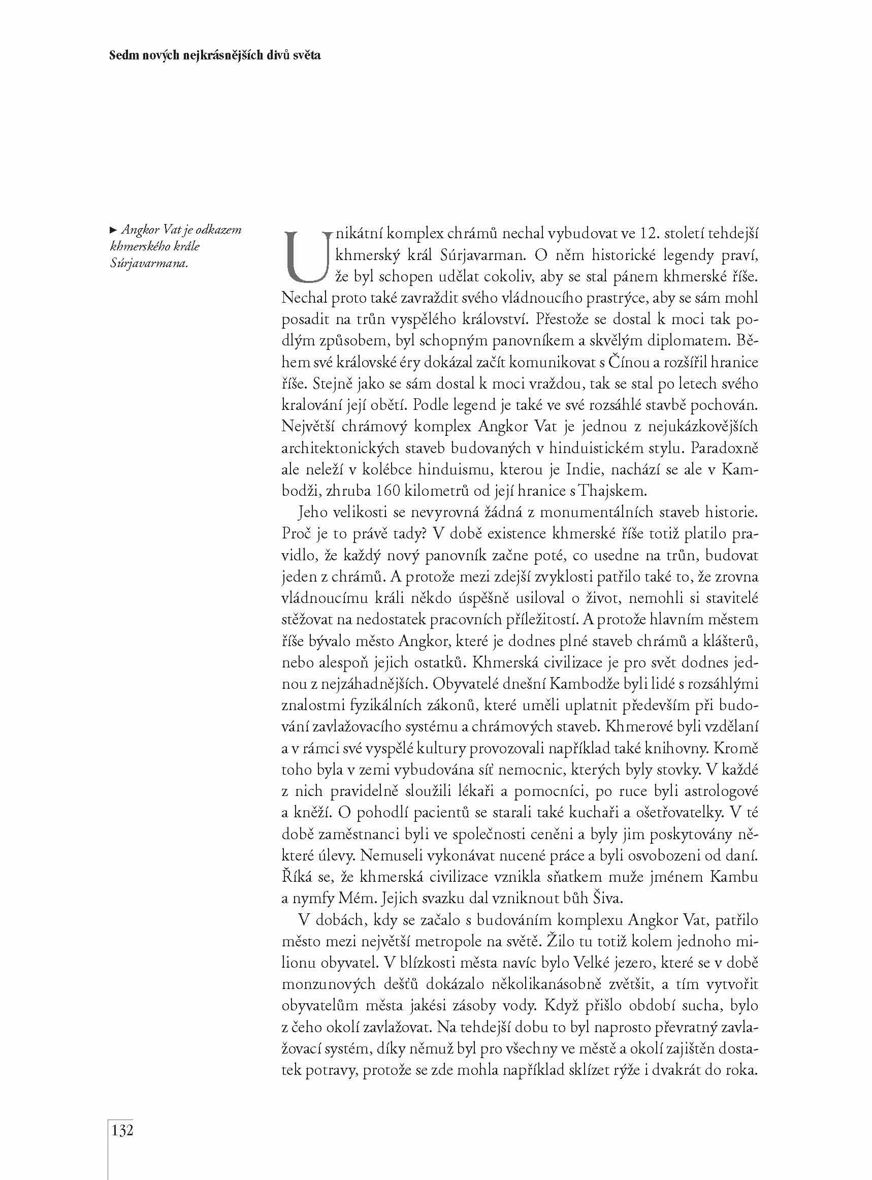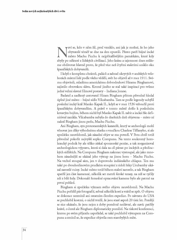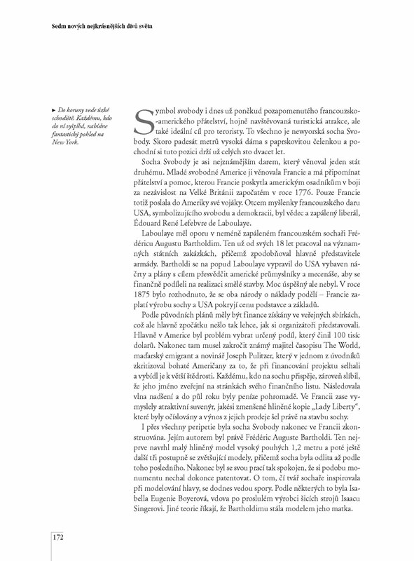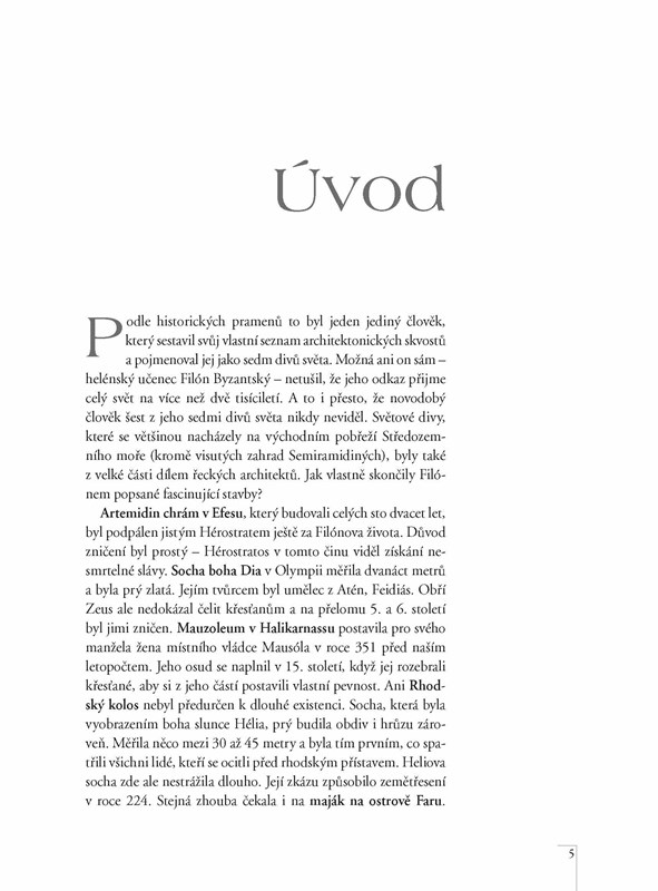 Od dob řeckého učence Filóna Byzantského, který ve své knize popsal starověkých sedm divů světa, uplynulo více než 2000 let a z jeho divů se však do dnešních dnů zachovaly jen egyptské pyramidy. Proto se před pěti lety zrodil nápad – vyhlásit nových sedm divů, které které si zaslouží stejný obdiv jako ty starověké. PO nich a dalších pamětihodnostech nás provede kniha Lucie Bártové doplněná o krásné fotografie a zajímavé texty.